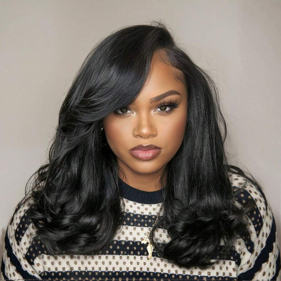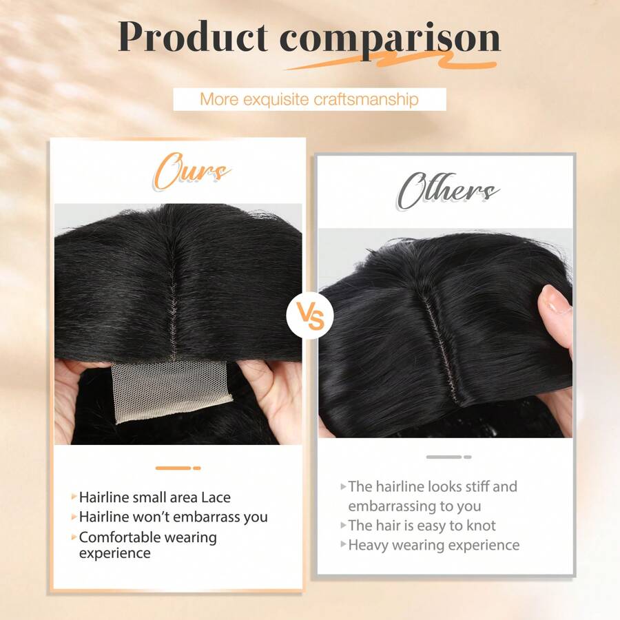 باروكة قصيرة بطول الكتف مع جزء جانبي وشعر مزخرف طبيعي، مصممة من النسيج الخالي من الغراء، بموجات جسمية خفيفة ومتموجة تمنحك مظهرًا طبيعيًا وأنيقًا. مقاومة للحرارة حتى 100°