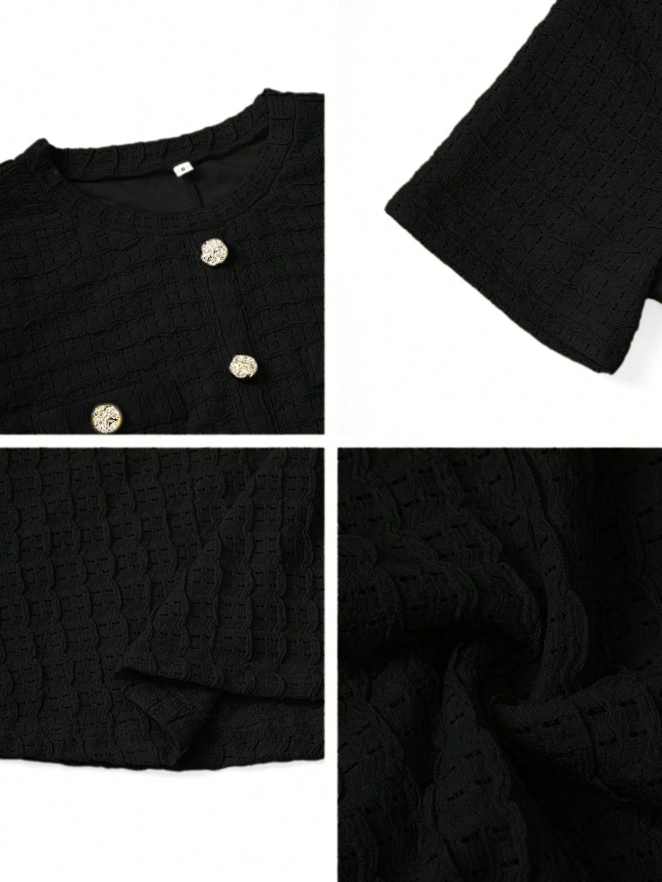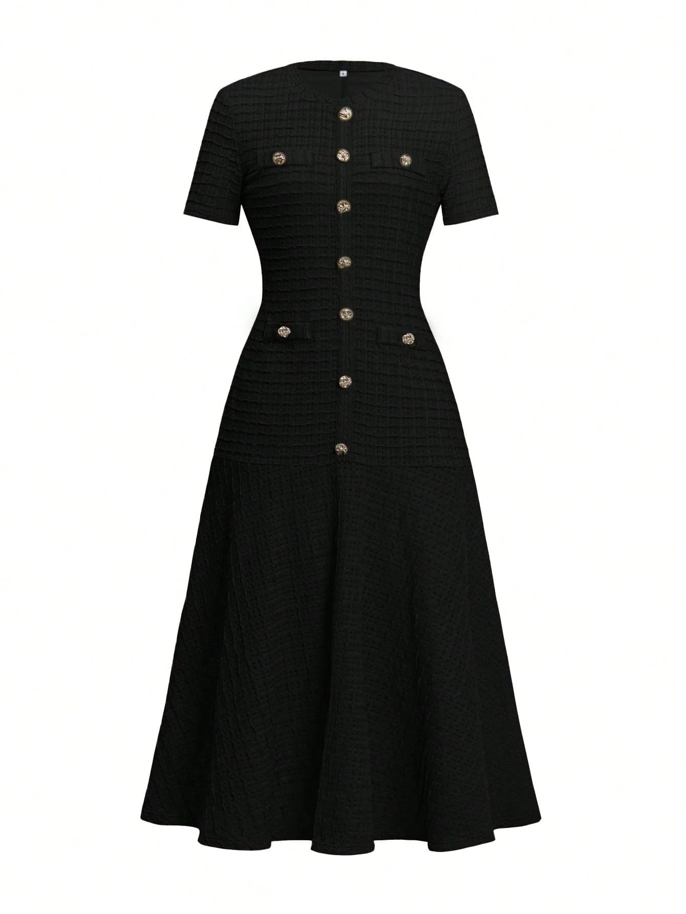 SHEIN بلوزة نسائية بأكمام قصيرة وياقة مستديرة مزينة بأزرار وجيوب