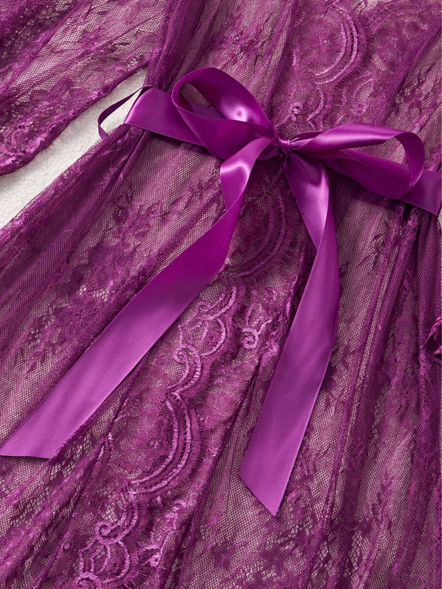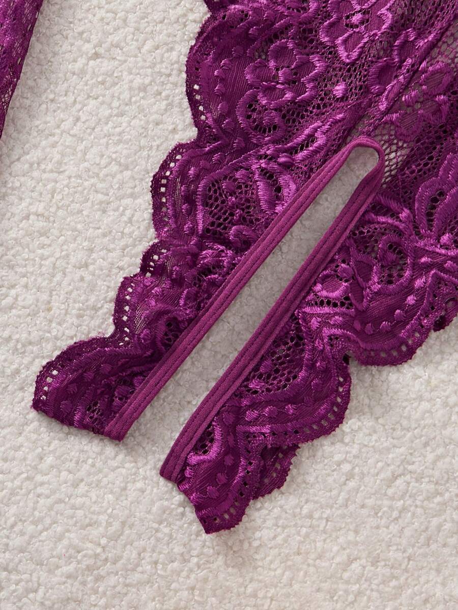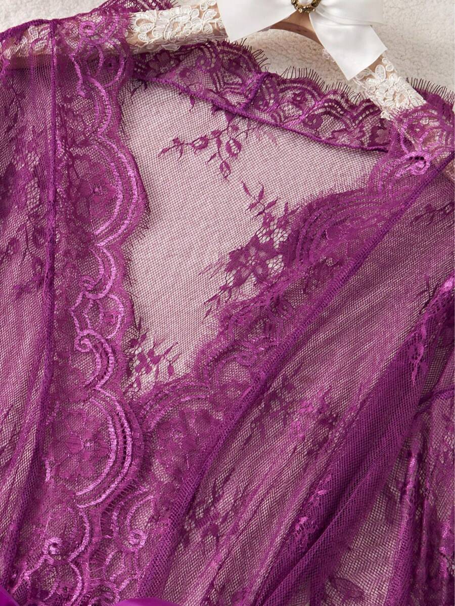 💜 SHEIN – بيجامة لانجري دانتيل مثيرة للمقاسات الكبيرة 💜