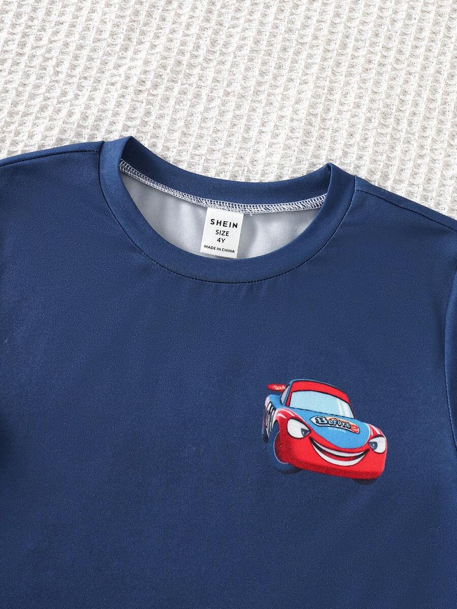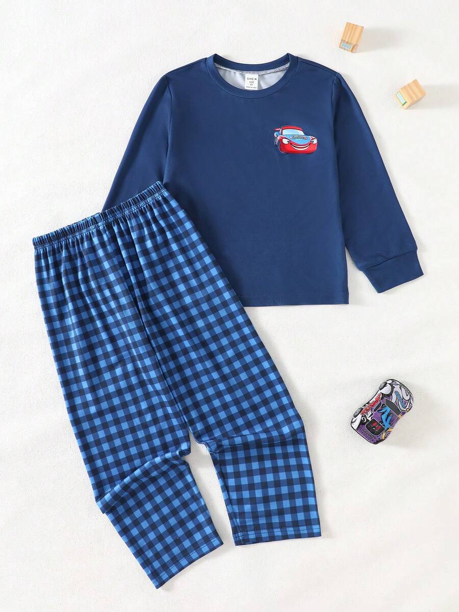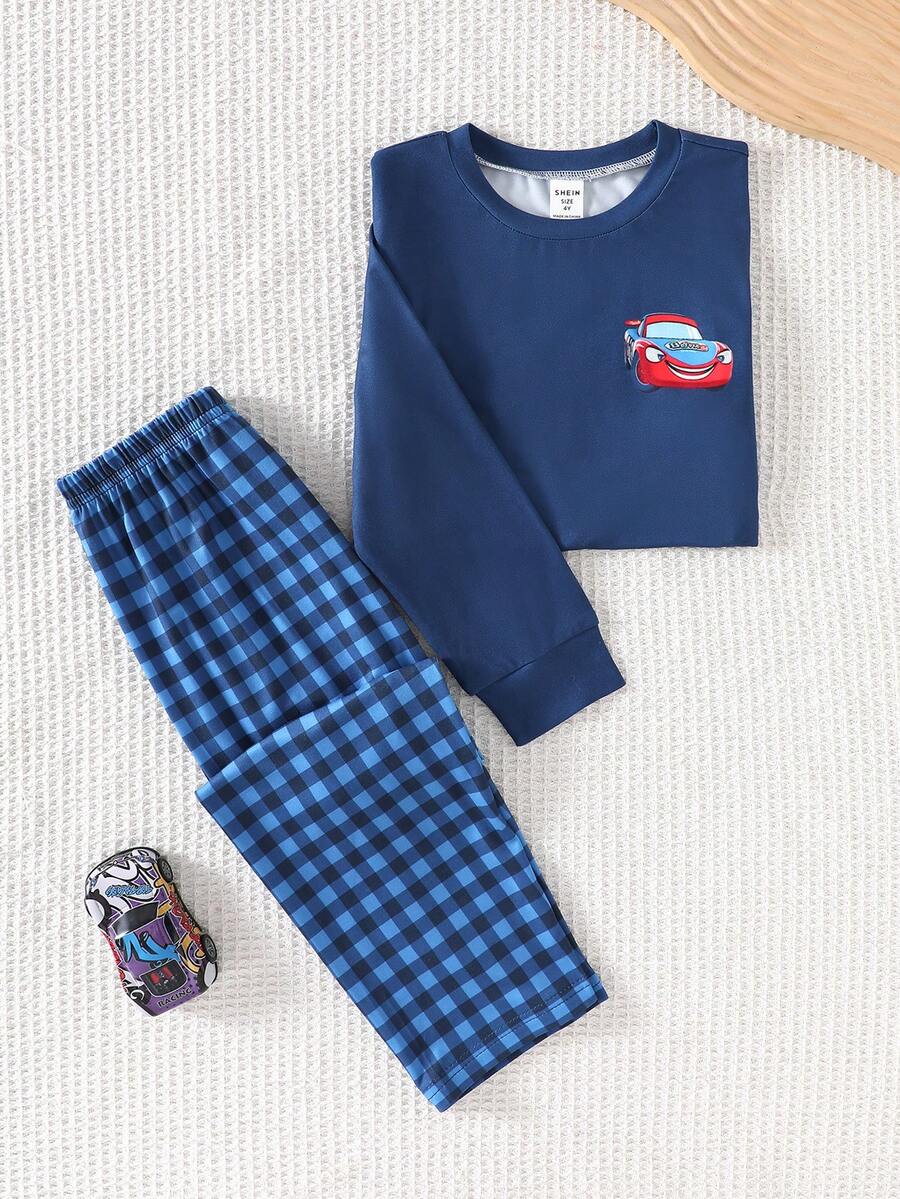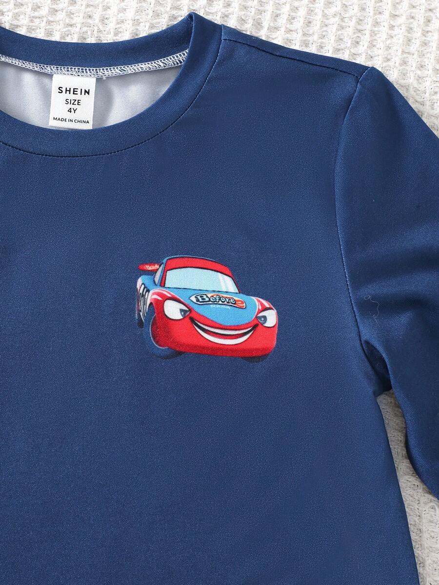 SHEIN بيجامة كاجوال 2 قطعة بنقشة سيارات بلوزة بأكمام طويلة وبنطلون