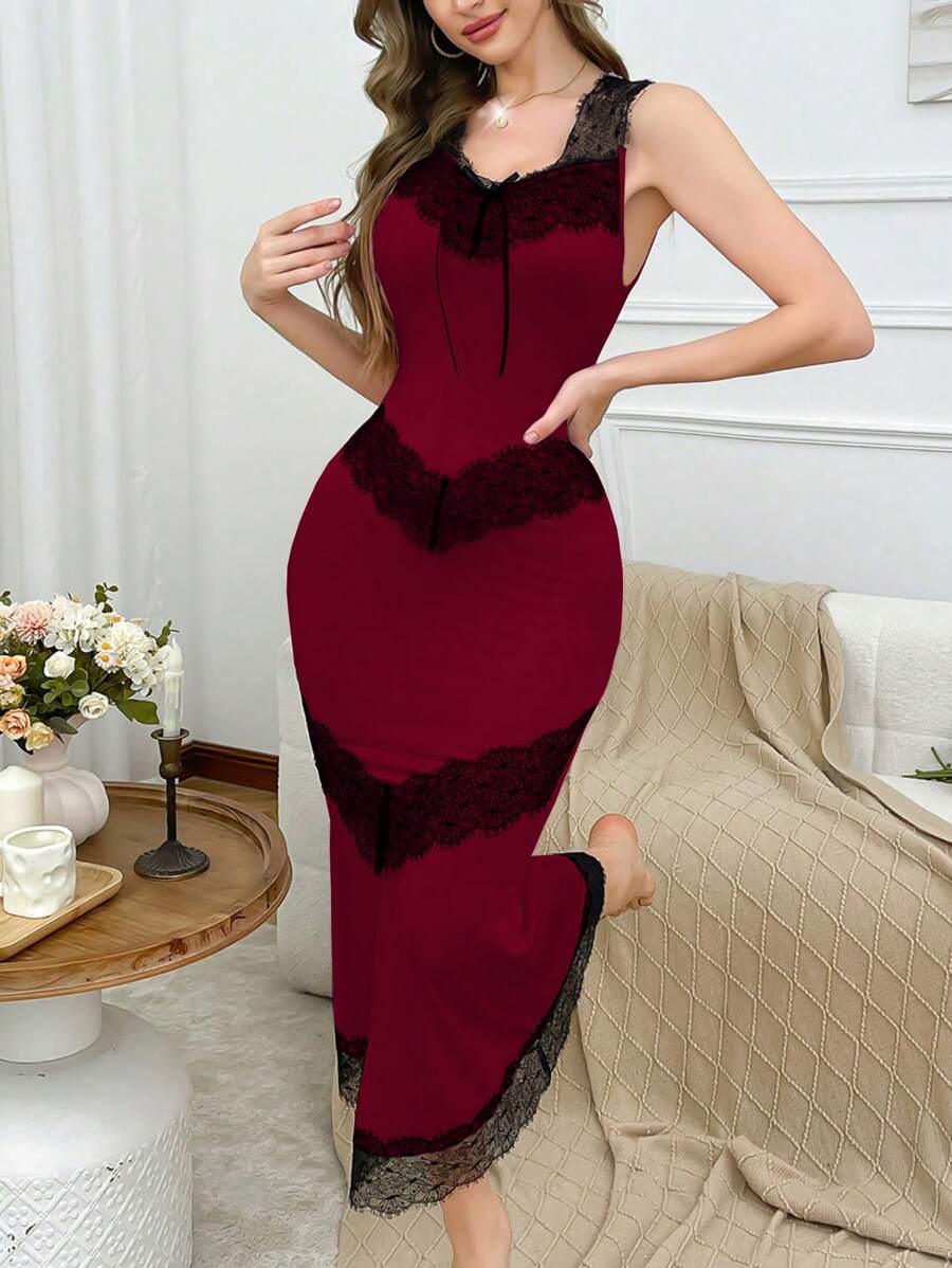 SHEIN ثوب نوم من الدانتيل محدد للجسم بتصميم أنيق