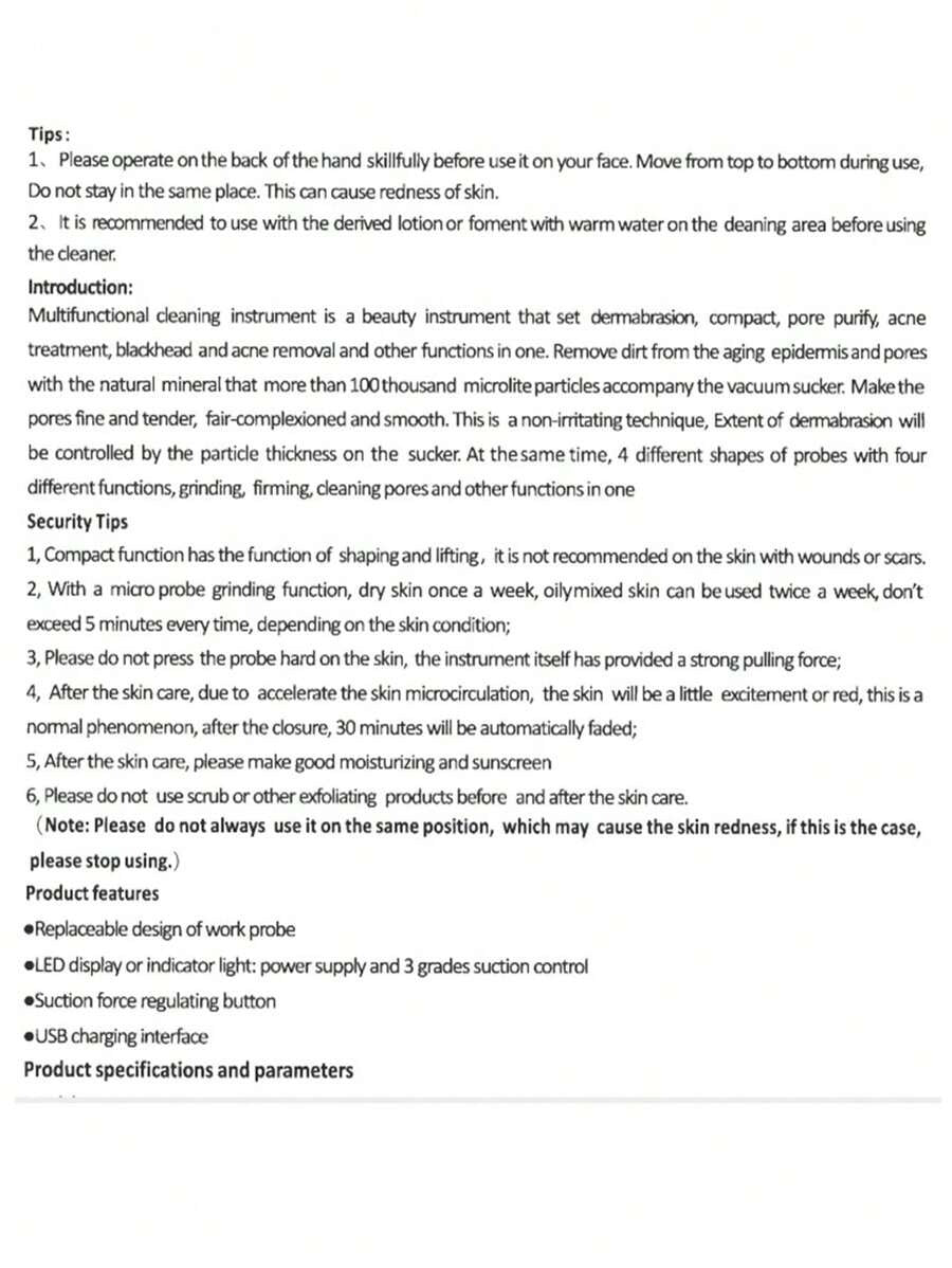 جهاز تنظيف مسام متعدد الوظائف بخمس قوى شفط فعّالة، يساعد على إزالة الرؤوس السوداء وتنقية البشرة بسهولة واحترافية.المواصفات: