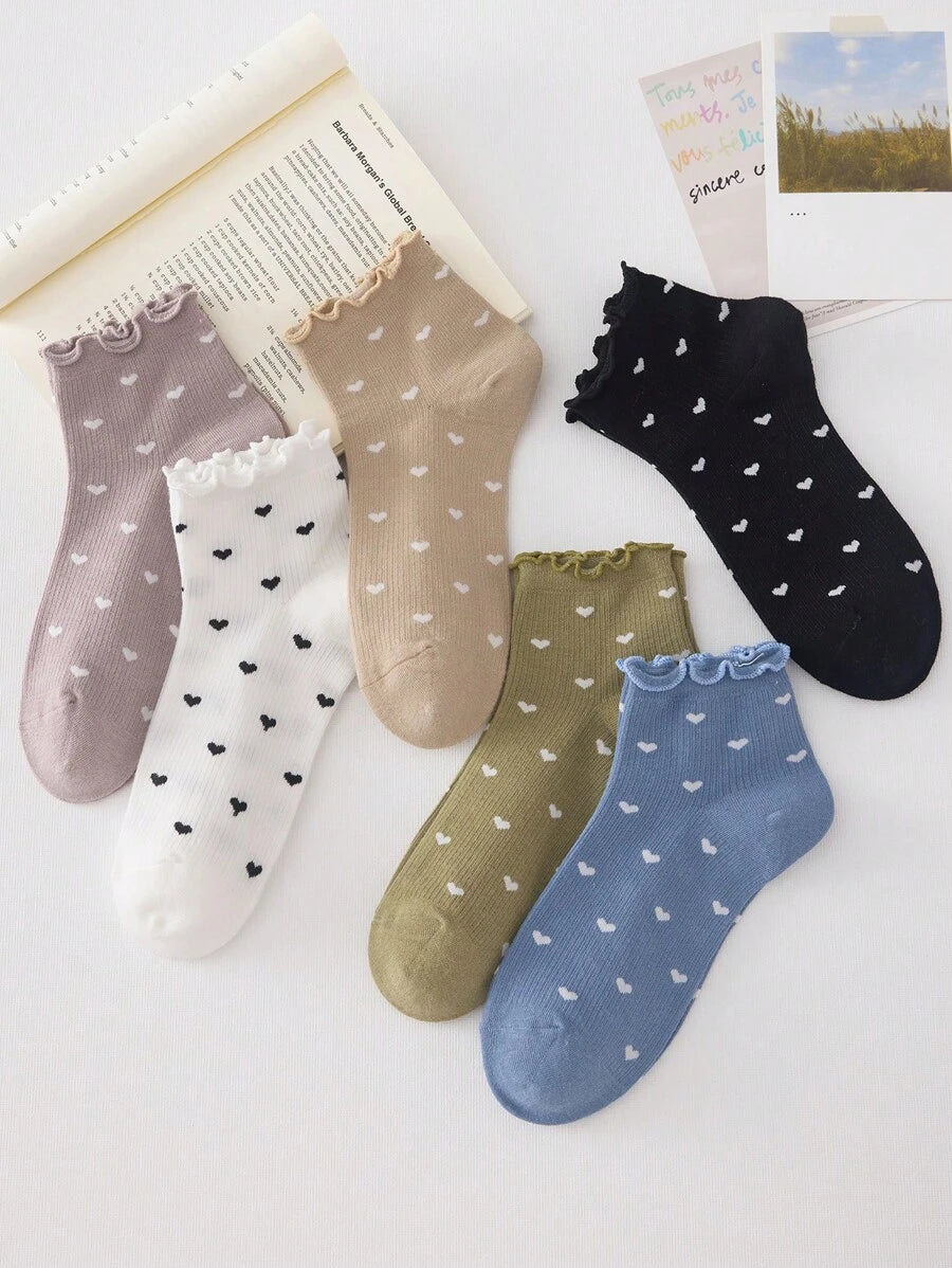 🖤 جوارب كاحل نسائية بنمط قلوب – 4 أزواج 🖤