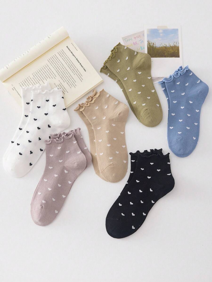SHEIN جوارب كاحل نسائية 4 ازواج بنمط قلب أبيض وأسود