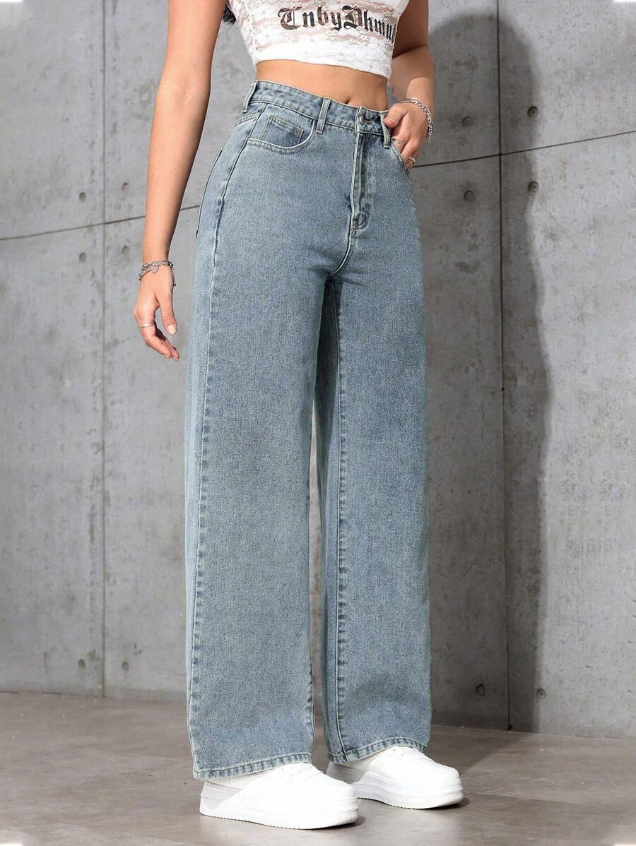 SHEIN جينز نسائي بقصة ساق مستقيمة وفضفاضة بجيوب
