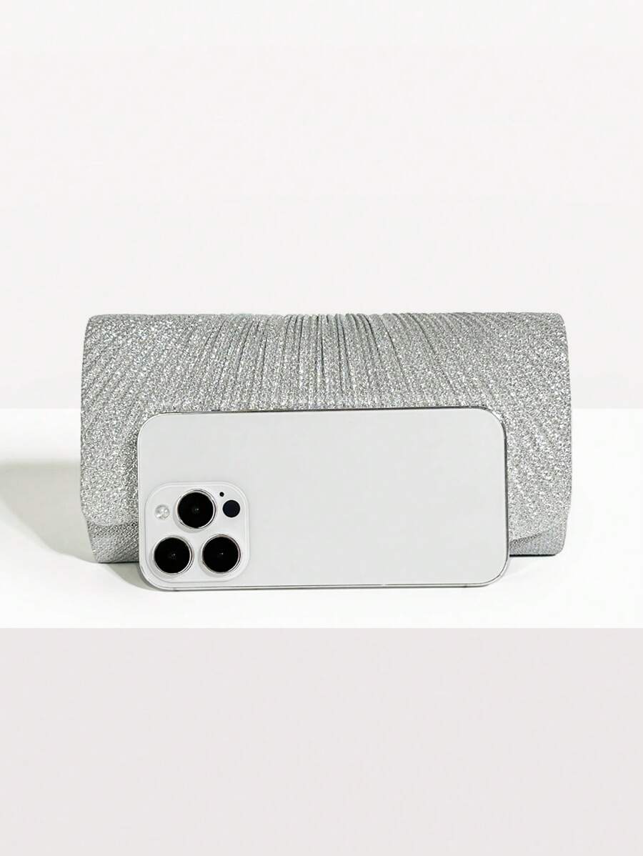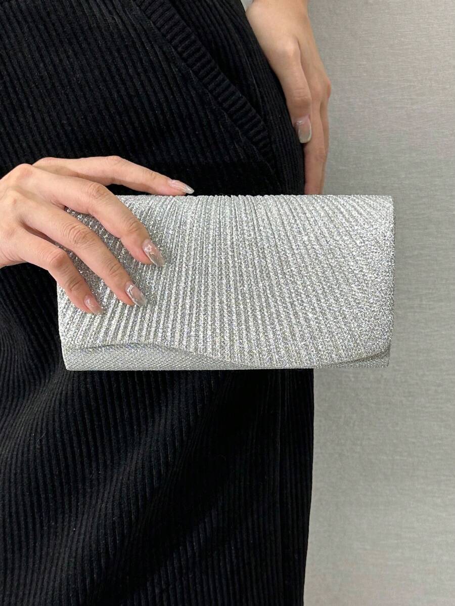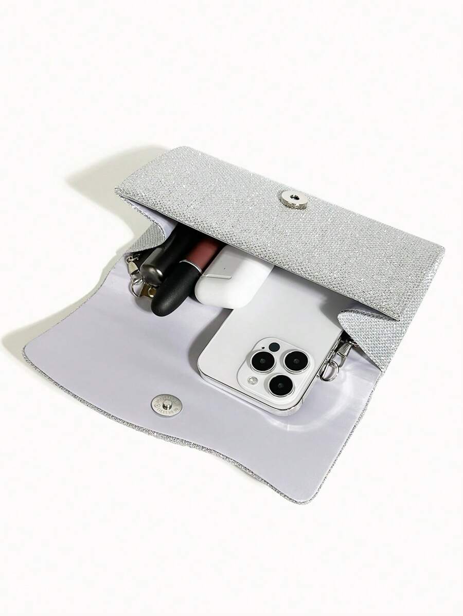 SHEIN حقيبة دلو فضية مزينة بالراين ستون