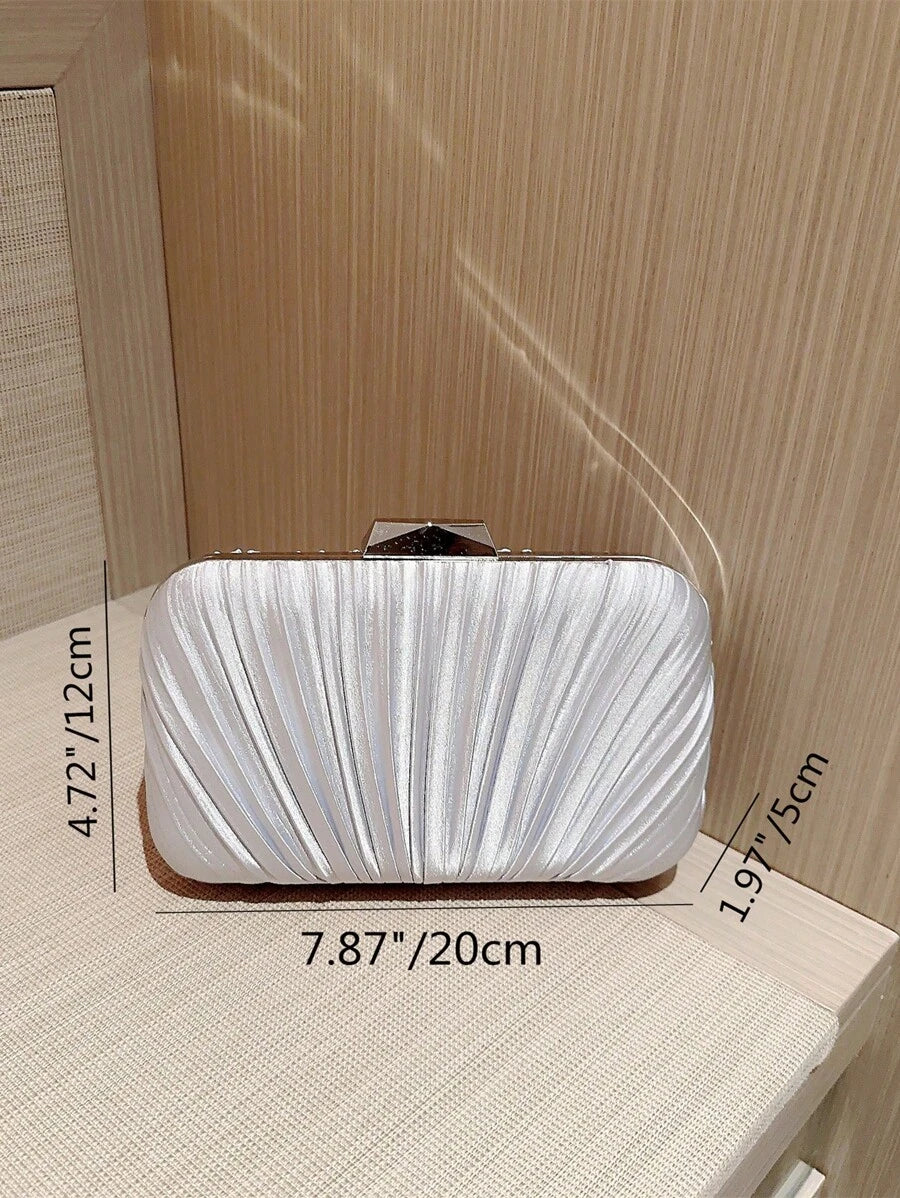 ✨ حقيبة مسائية فاخرة من الساتان المطوي بسلسلة – فضي أنيق