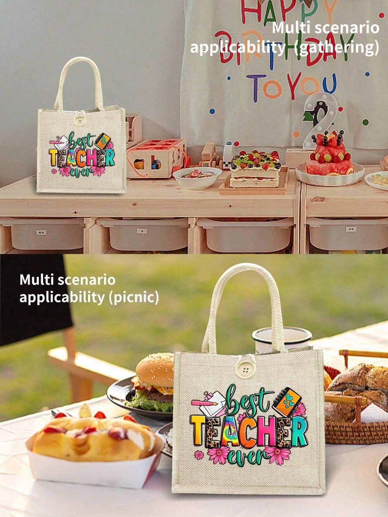 SHEIN حقيبة كتف كتان بطباعة كاكي