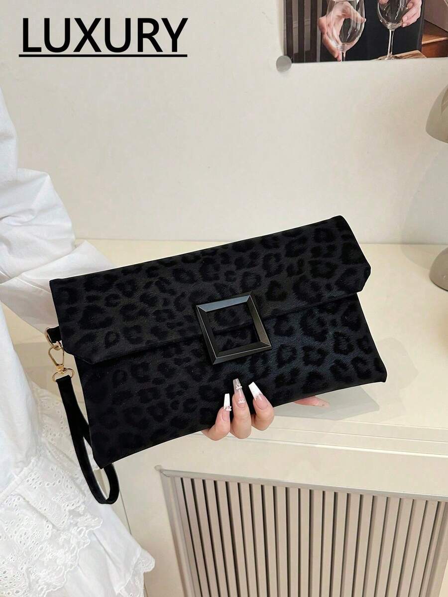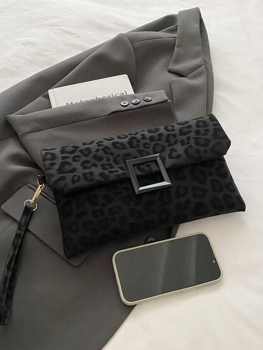 SHEIN حقيبة كلاتش سوداء صغيرة بطباعة نمر عصرية
