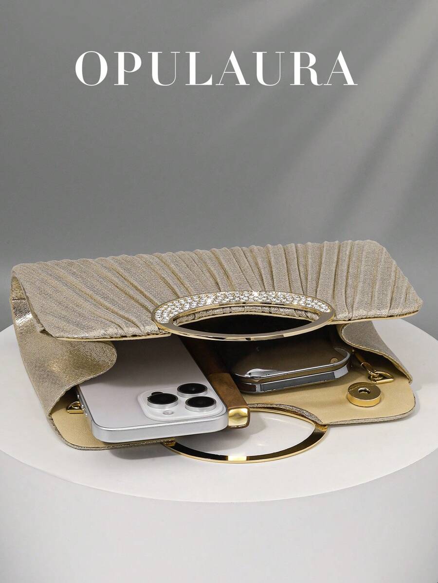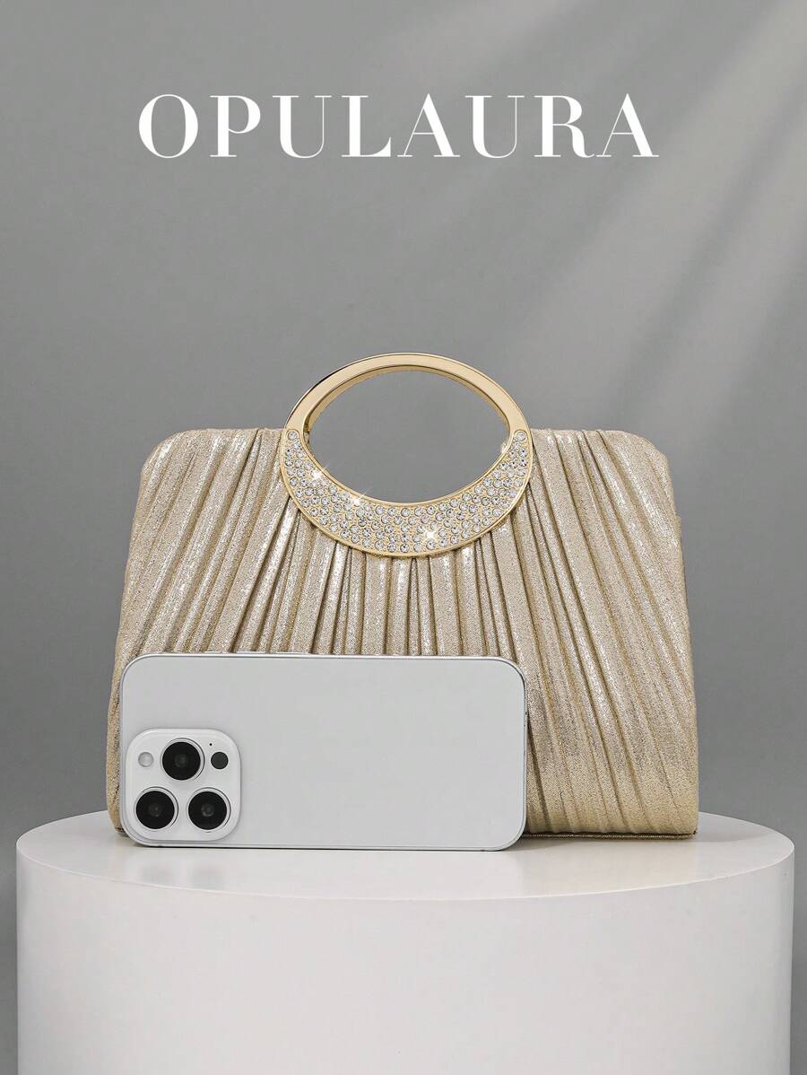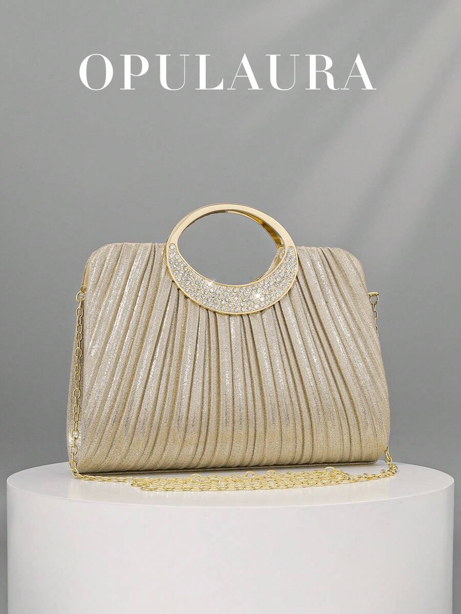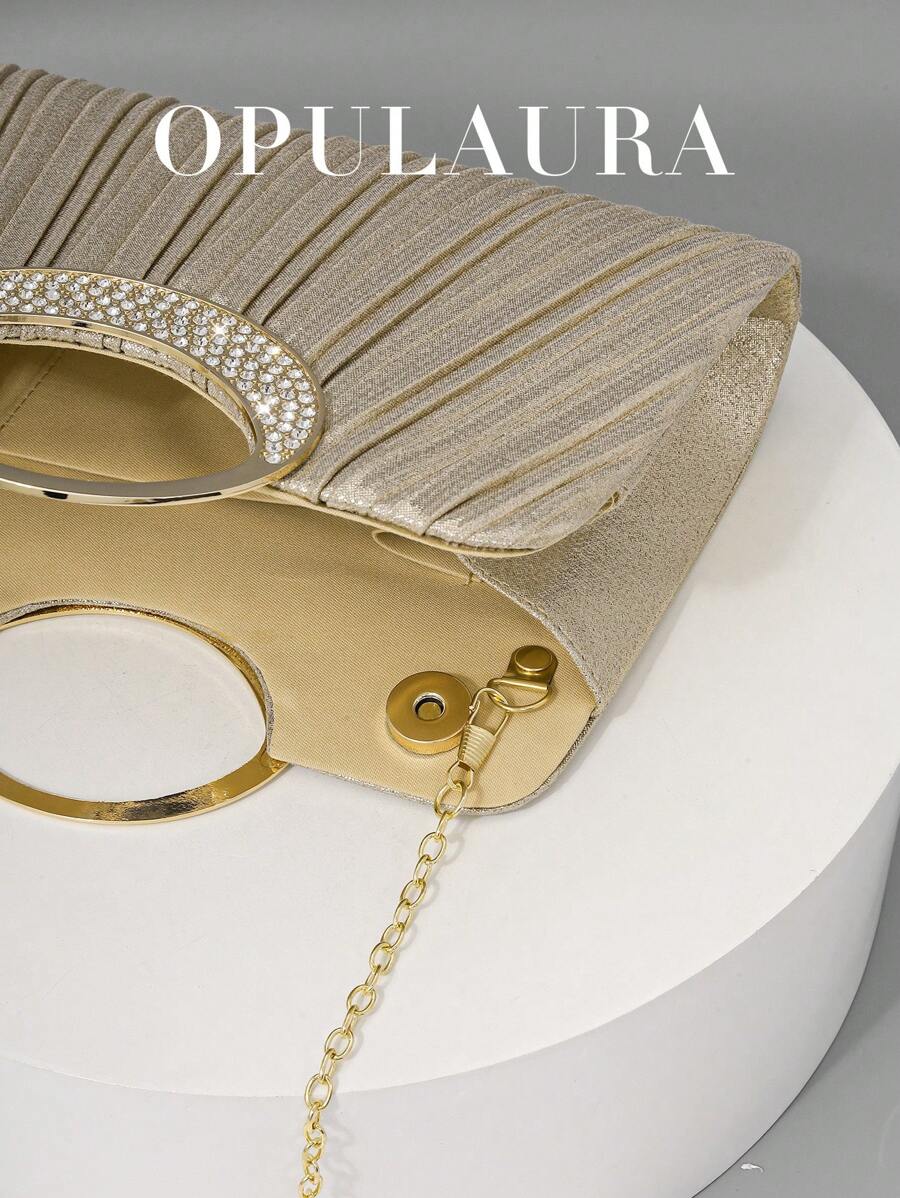 ✨💎 حقيبة نسائية ميني مرصعة بالراين باللون الذهبي