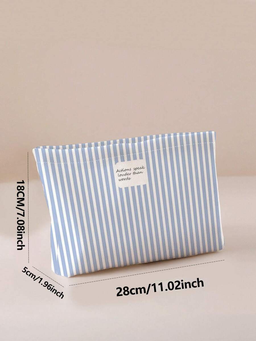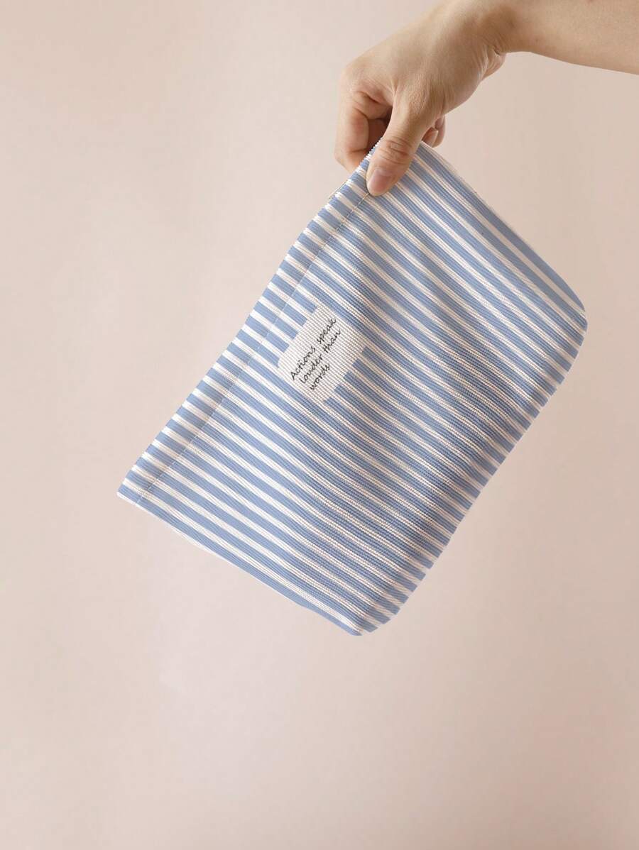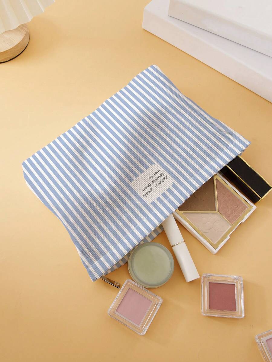 SHEIN حقيبة مستحضرات تجميل قطنية مخططة مطبوعة على الجانبين.