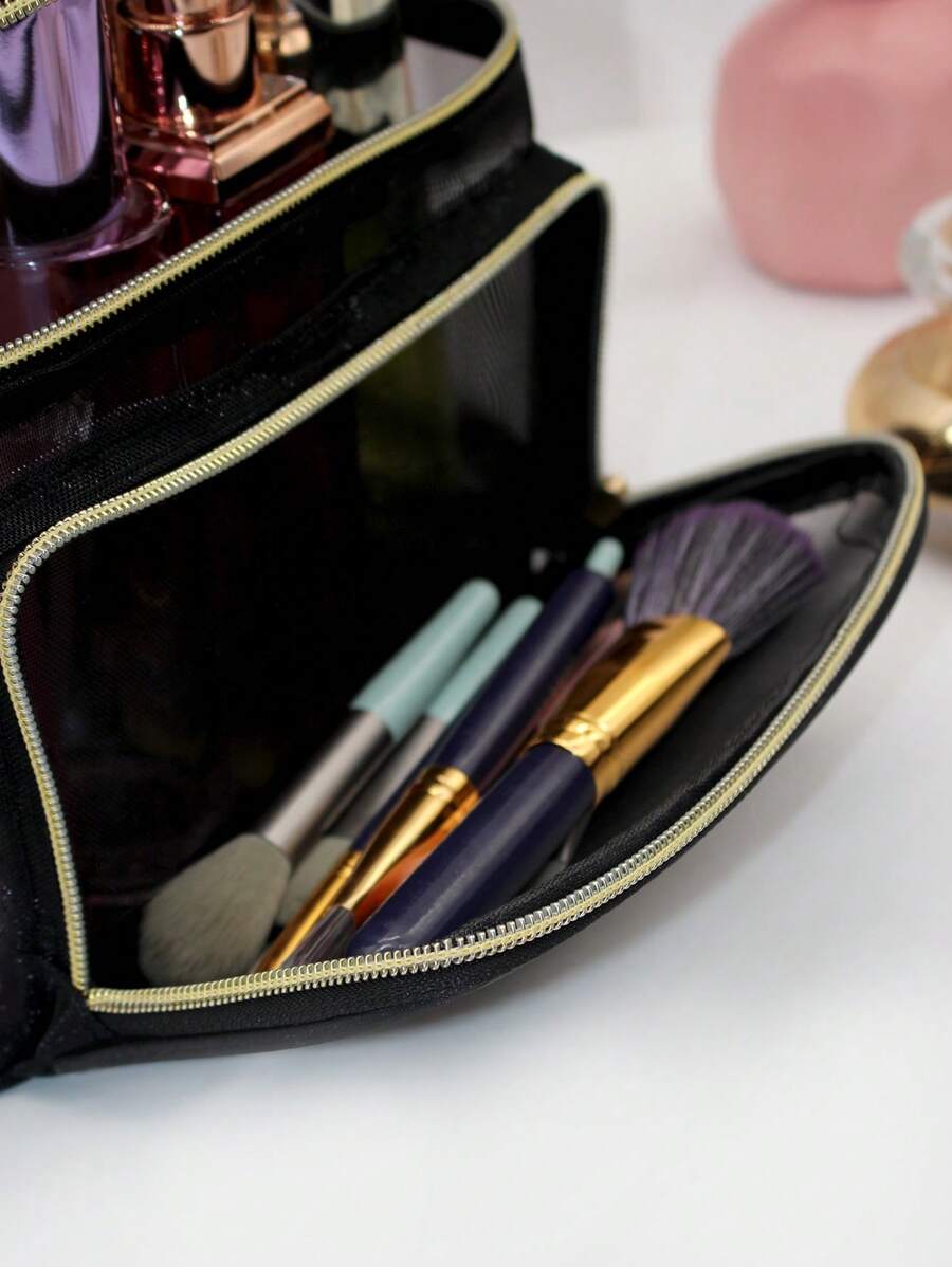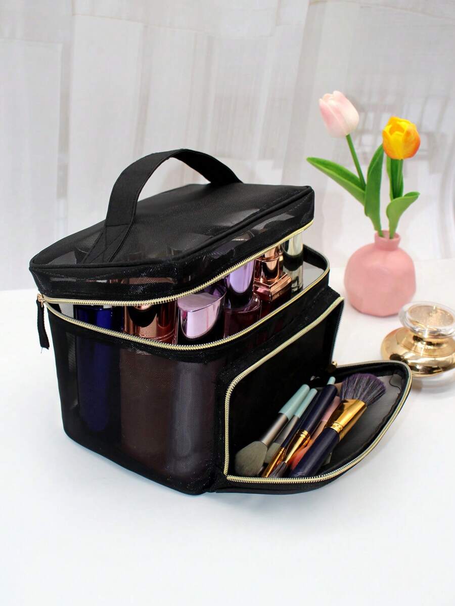 SHEIN حقيبة مكياج سوداء شبكية كبيرة للتخزين