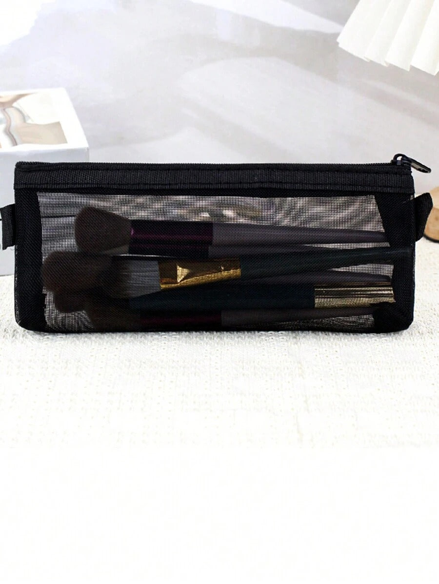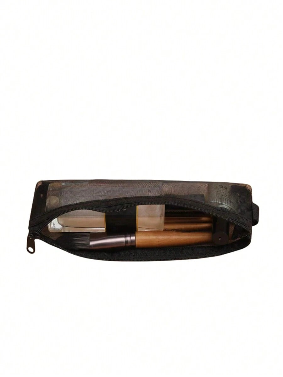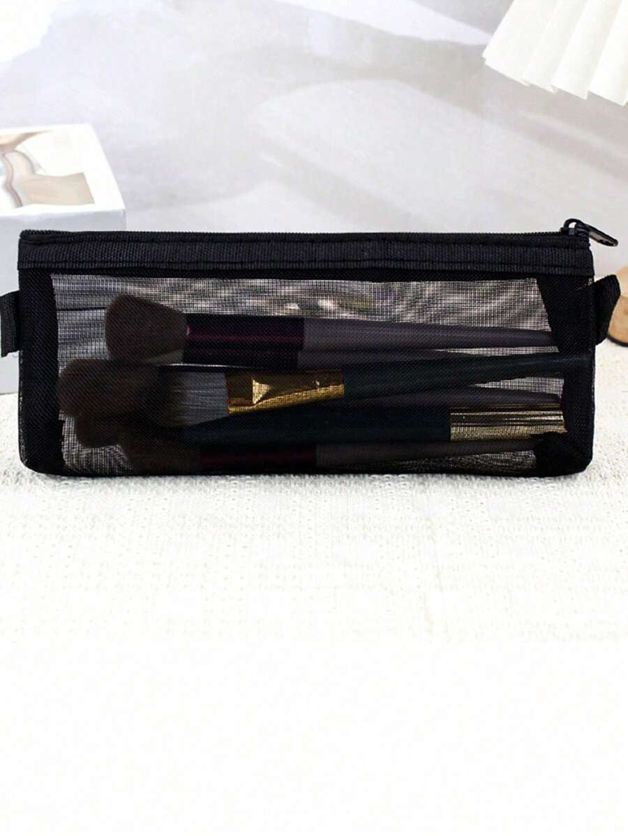SHEIN حقيبة مكياج سوداء شفافة شبكية