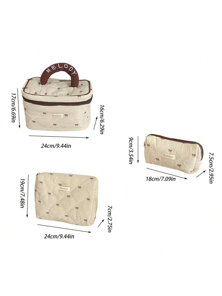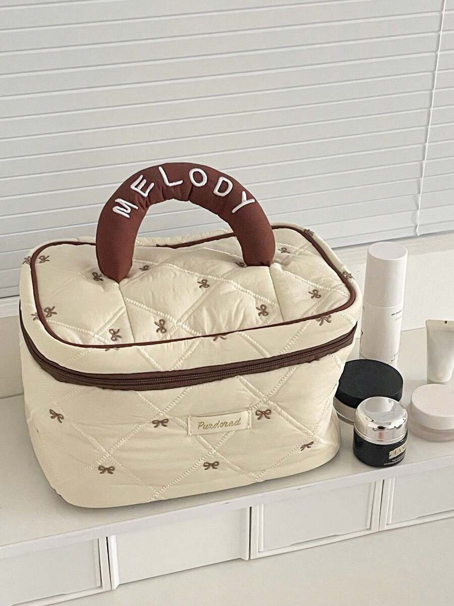 SHEIN حقيبة مكياج فيونكة من البوليستر بسحاب ناعمة وعملية