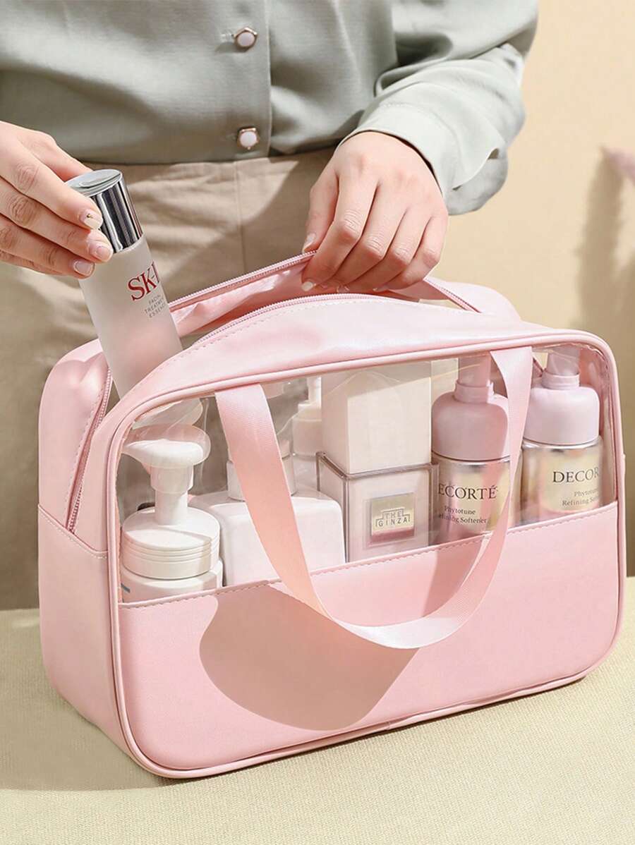 SHEIN حقيبة مكياج لحف كبيرة شبه شفافة مقاومة للماء
