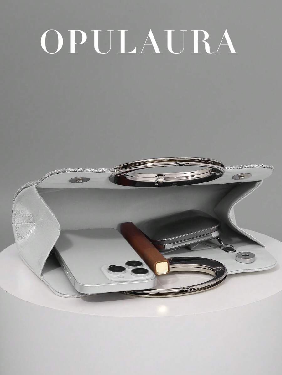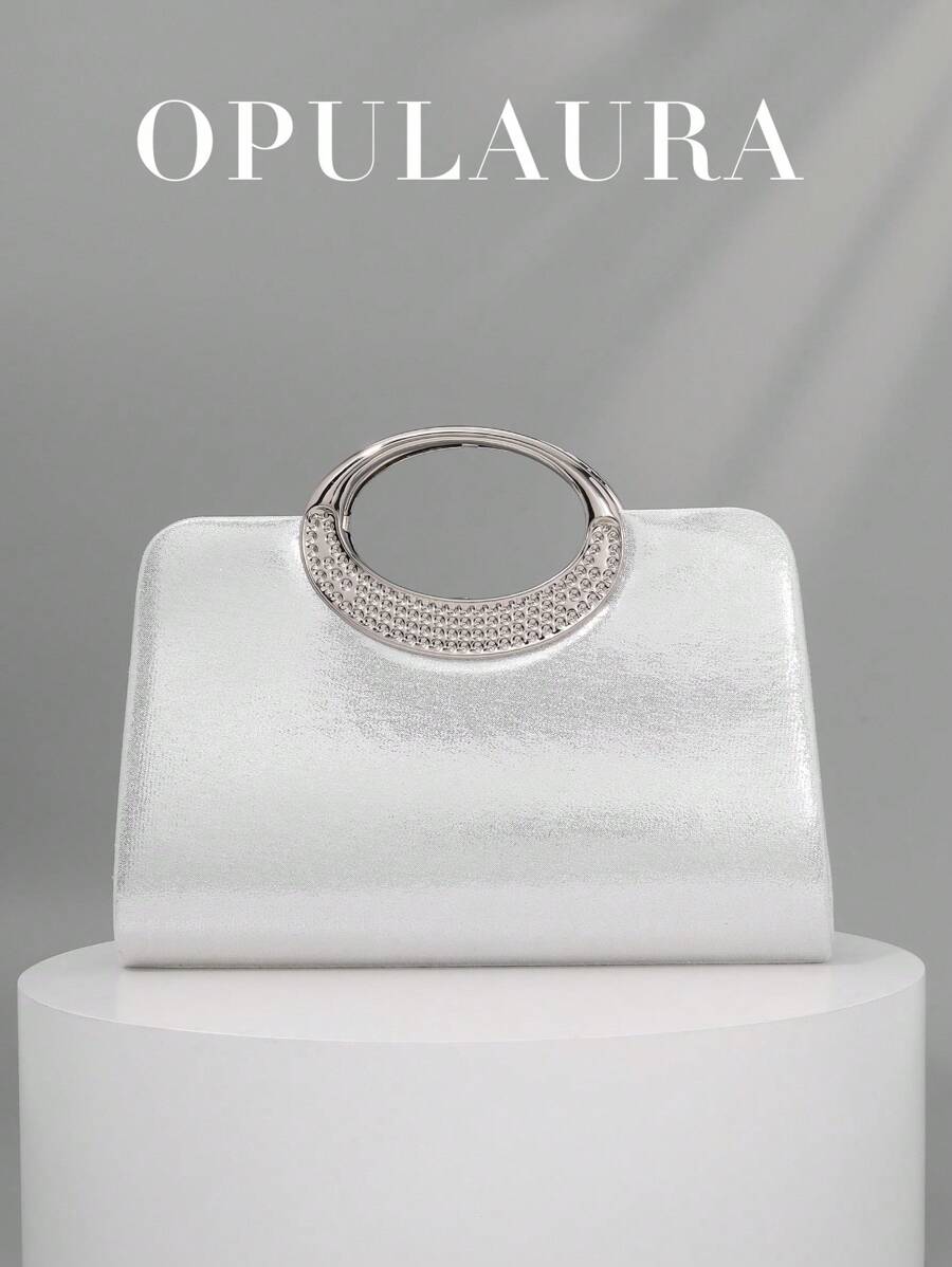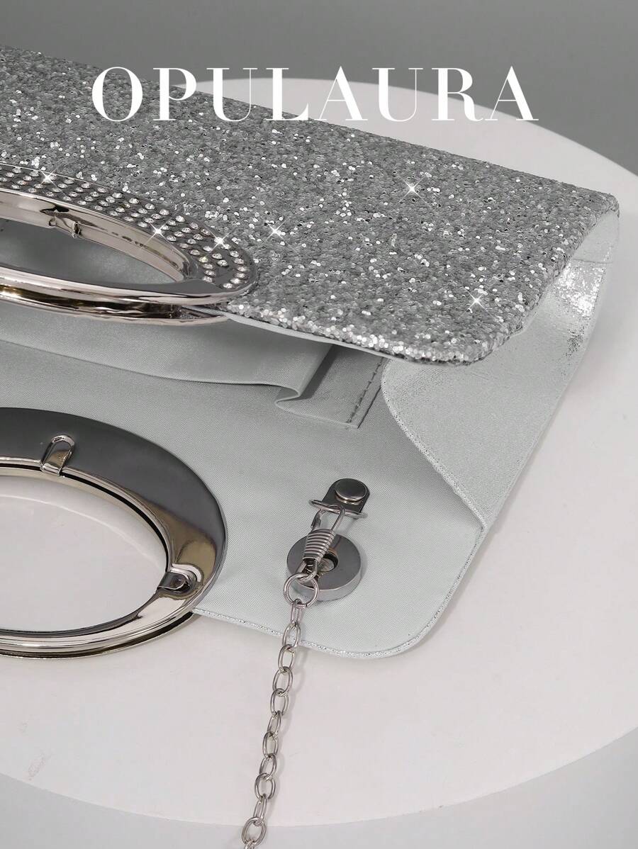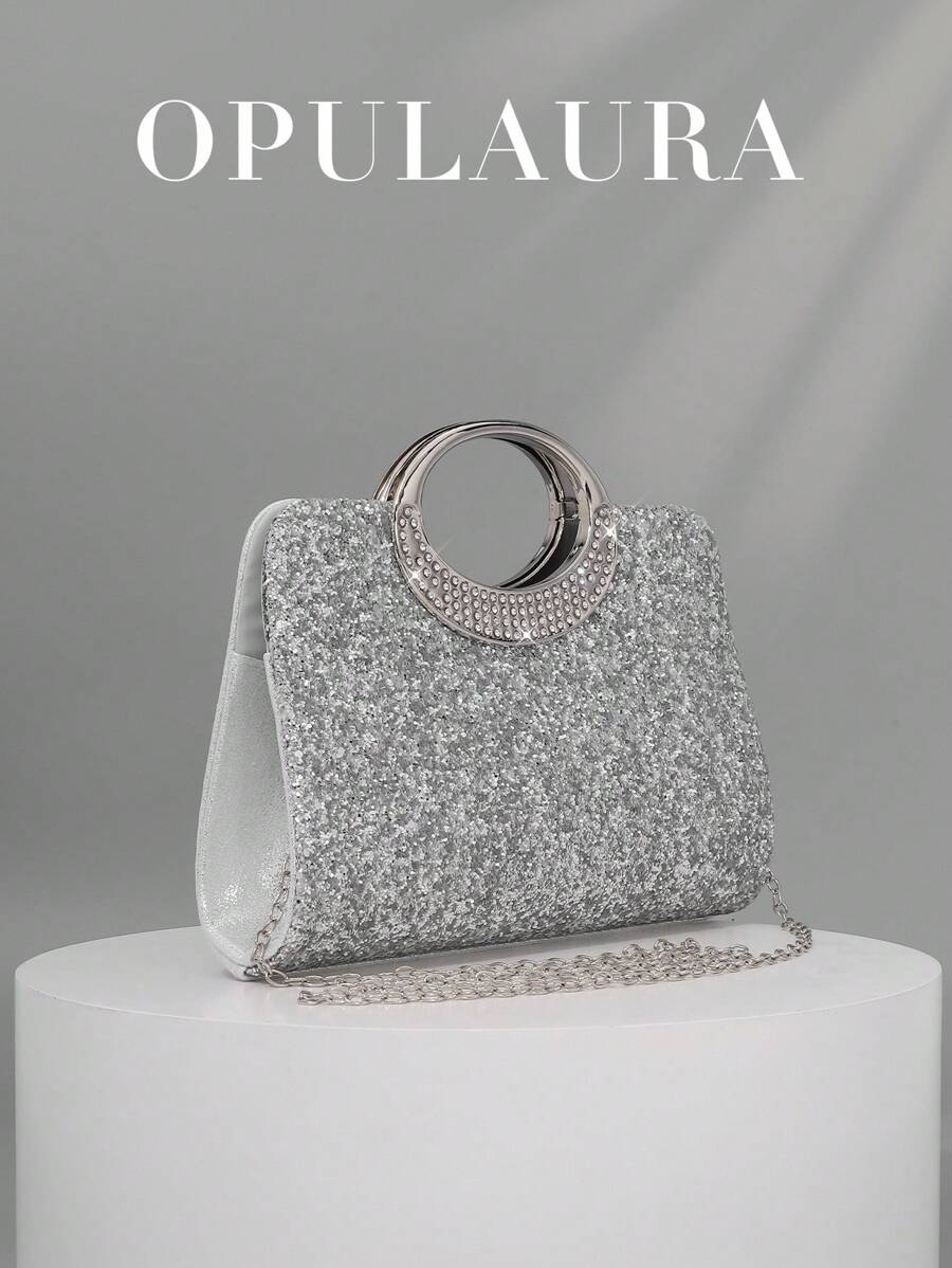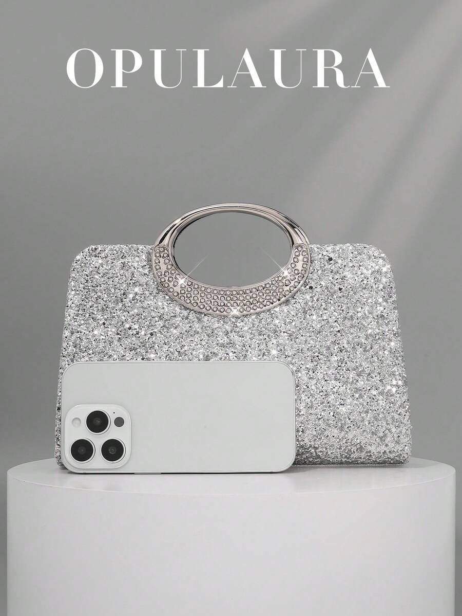 SHEIN حقيبة يد سهرة فضية فاخرة مزينة بالكريستال