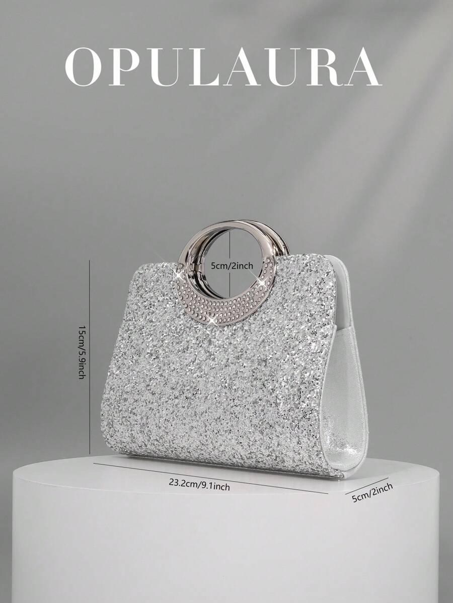 حقيبة يد صغيرة براقة وأنيقة. مثالية لحفلات الكوكتيل، السهرة الرسمية، عيد الميلاد، وحفلات الزفاف.