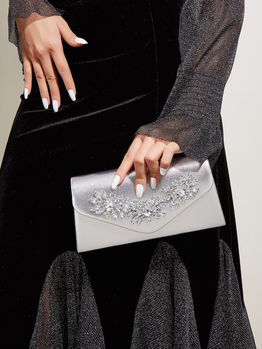 حقيبة مسائية صغيرة أنيقة وعملية. يمكن استخدامها كحقيبة كتف، حقيبة على الصدر، أو حقيبة يد، مثالية للحفلات والسهرات.