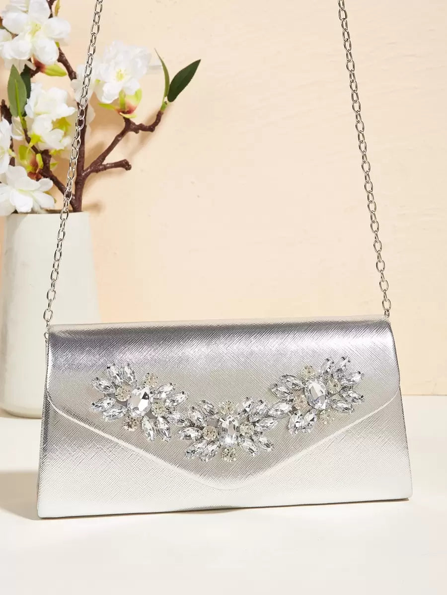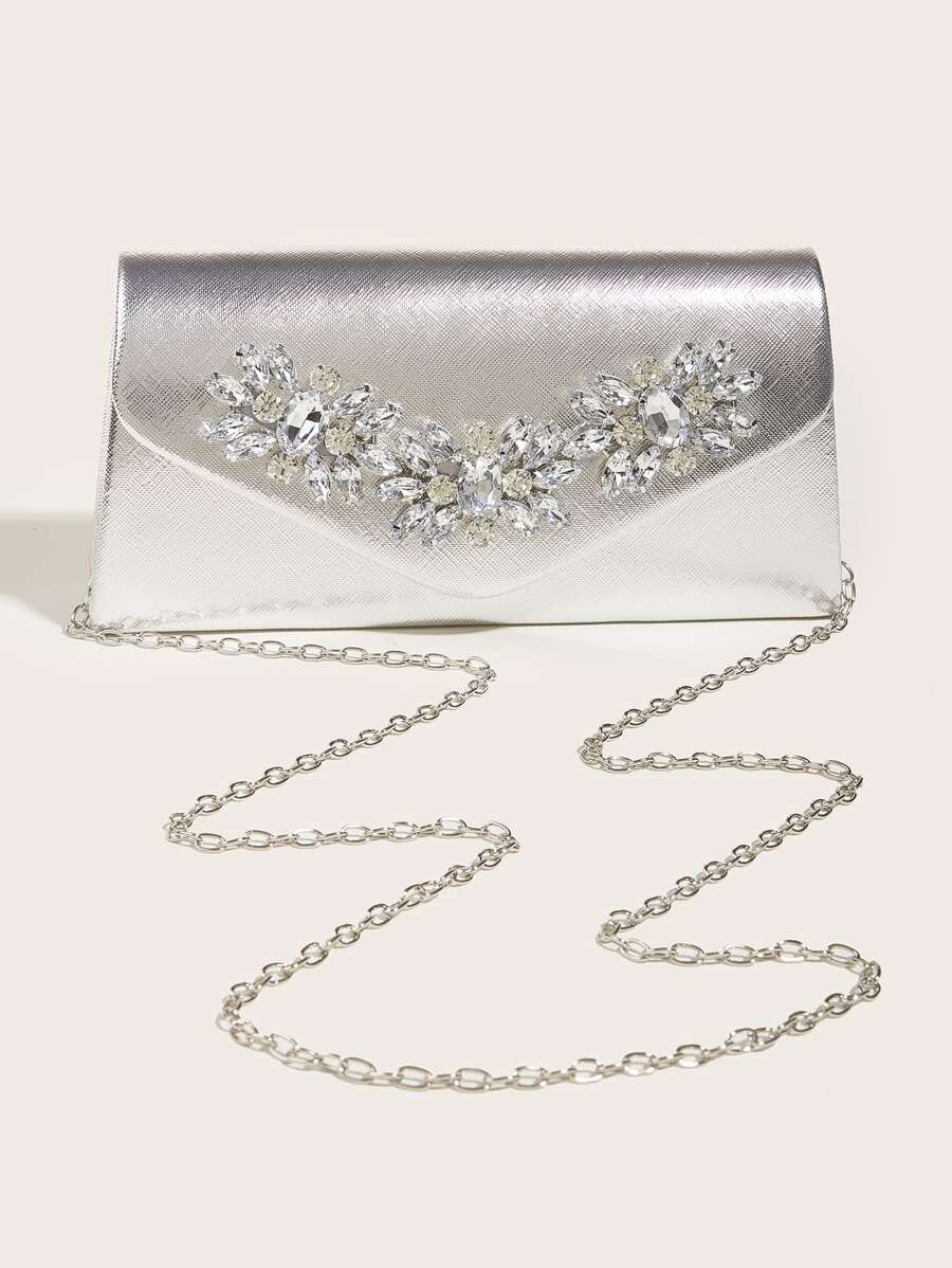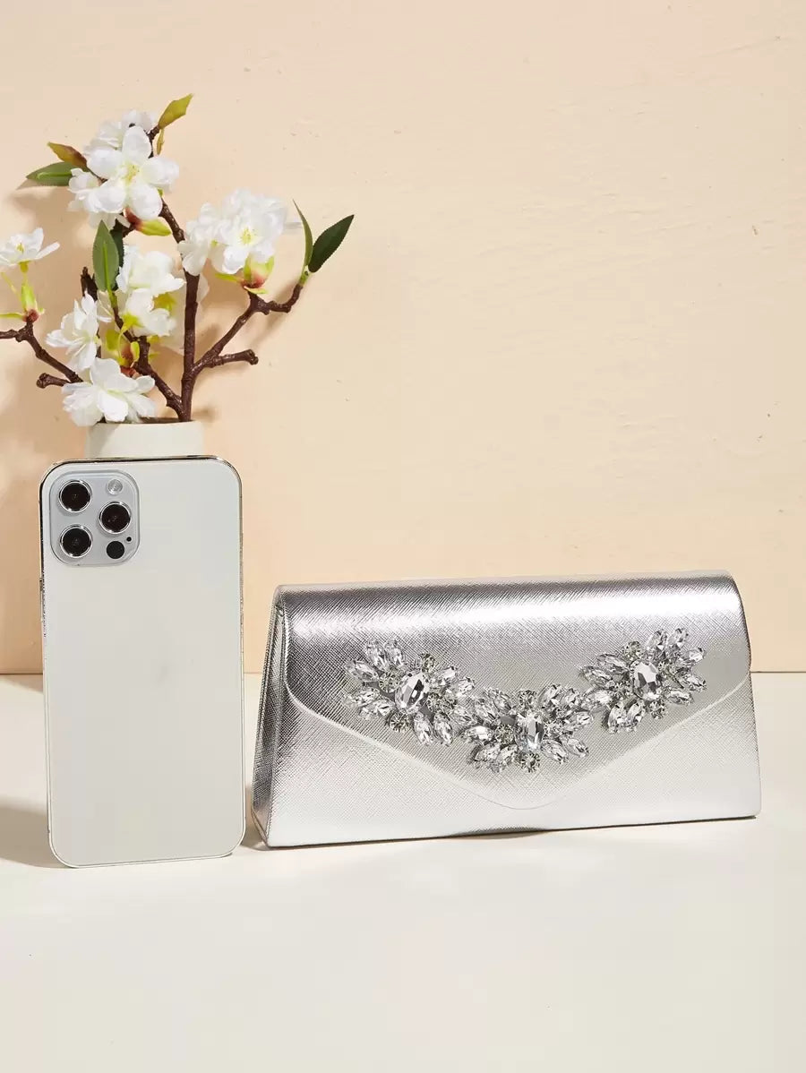 SHEIN حقيبة يد فينسي فضية مربعة صغيرة لامعة مع إبزيم راين