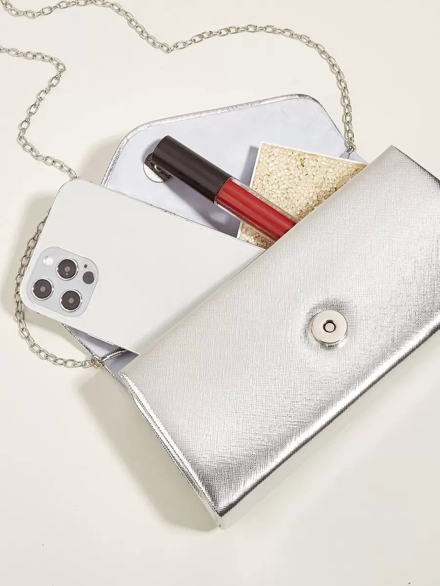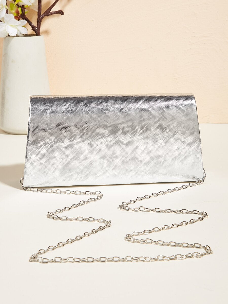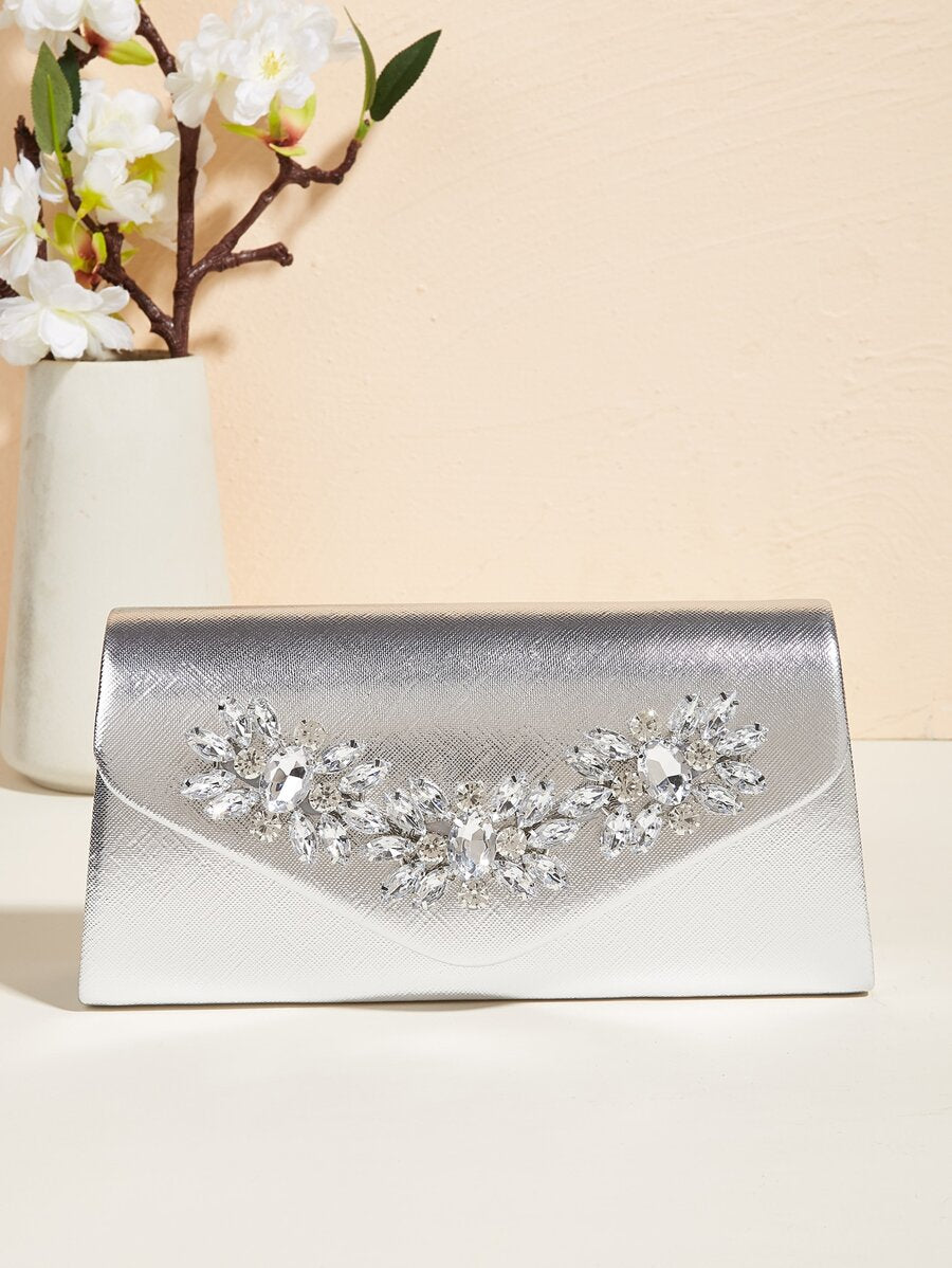 SHEIN حقيبة يد فينسي فضية مربعة صغيرة لامعة مع إبزيم راين