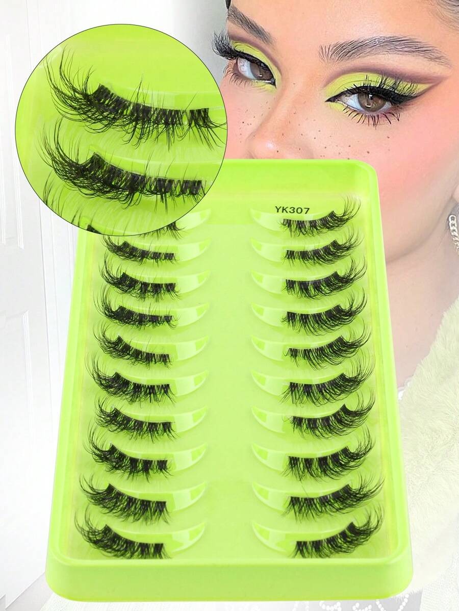 SHEIN رموش 10 أزواج نصفية طبيعية بساق شفافة