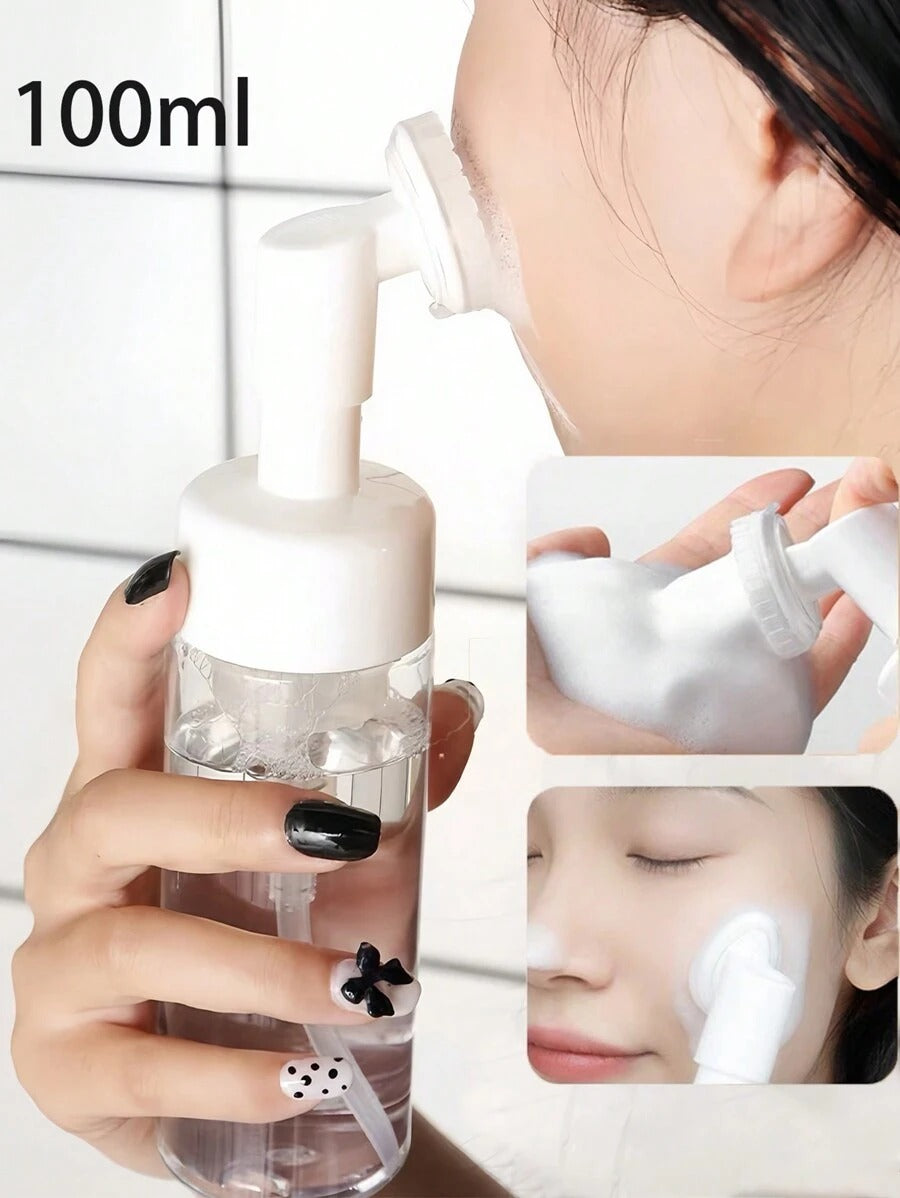 زجاجة سيليكون شفافة بحجم صغير، تصنع رغوة خفيفة لتنظيف الوجه أو الشامبو. سهلة الحمل والاستخدام، تناسب كل روتين تنظيف يومي.