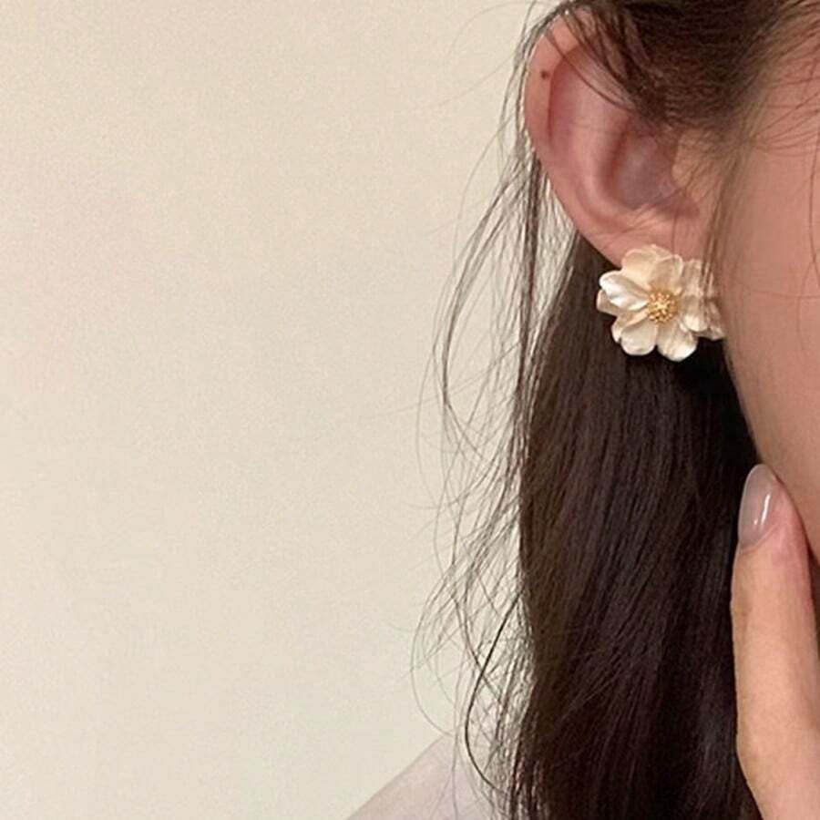 SHEIN زوج أقراط أزهار معلقة ناعمة لون بيج