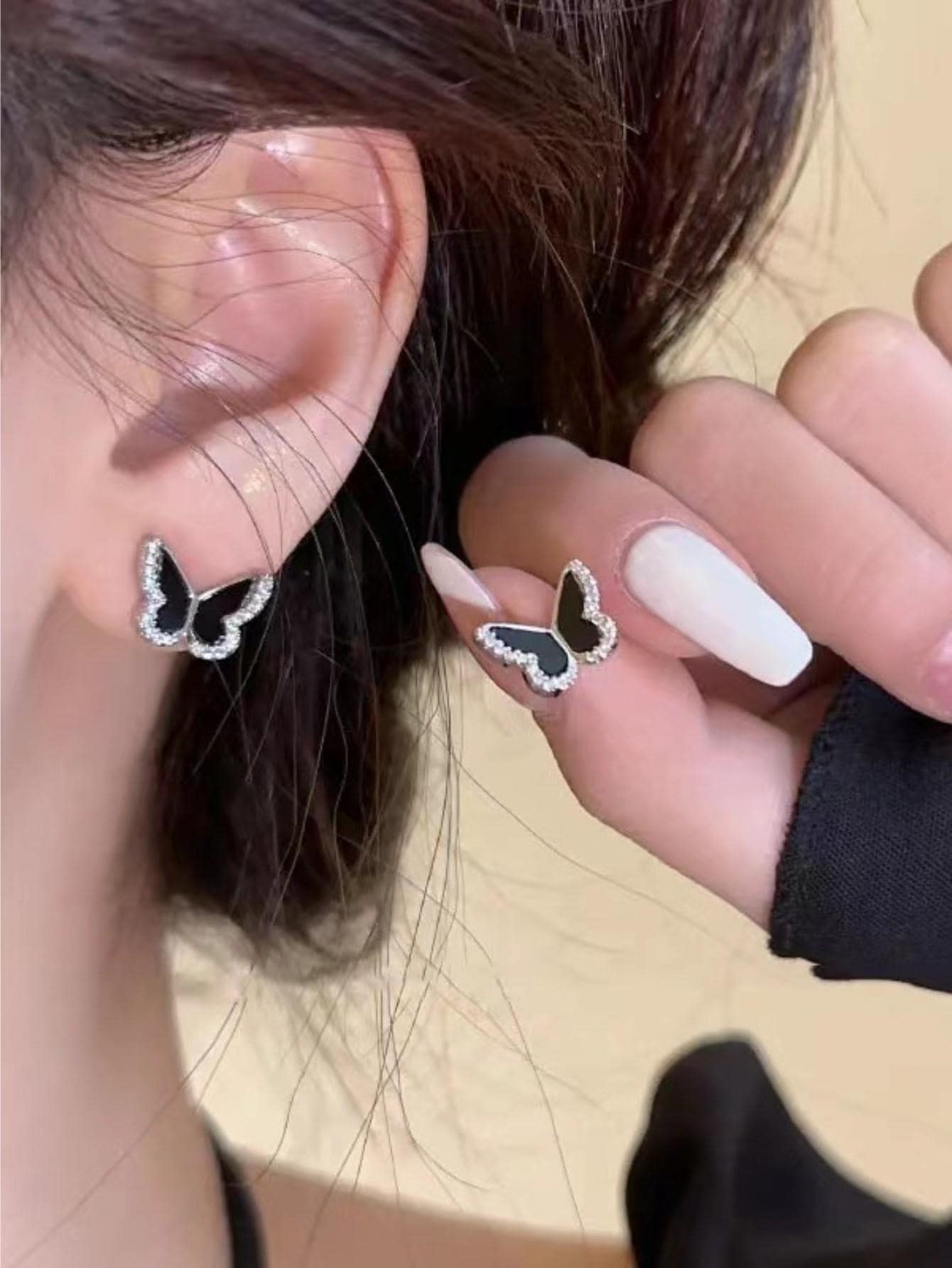 SHEIN زوج أقراط اسود بتصميم فراشة