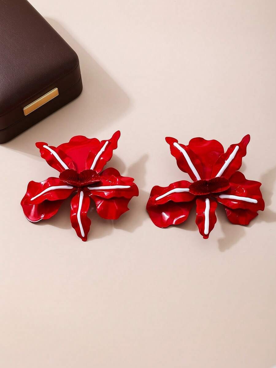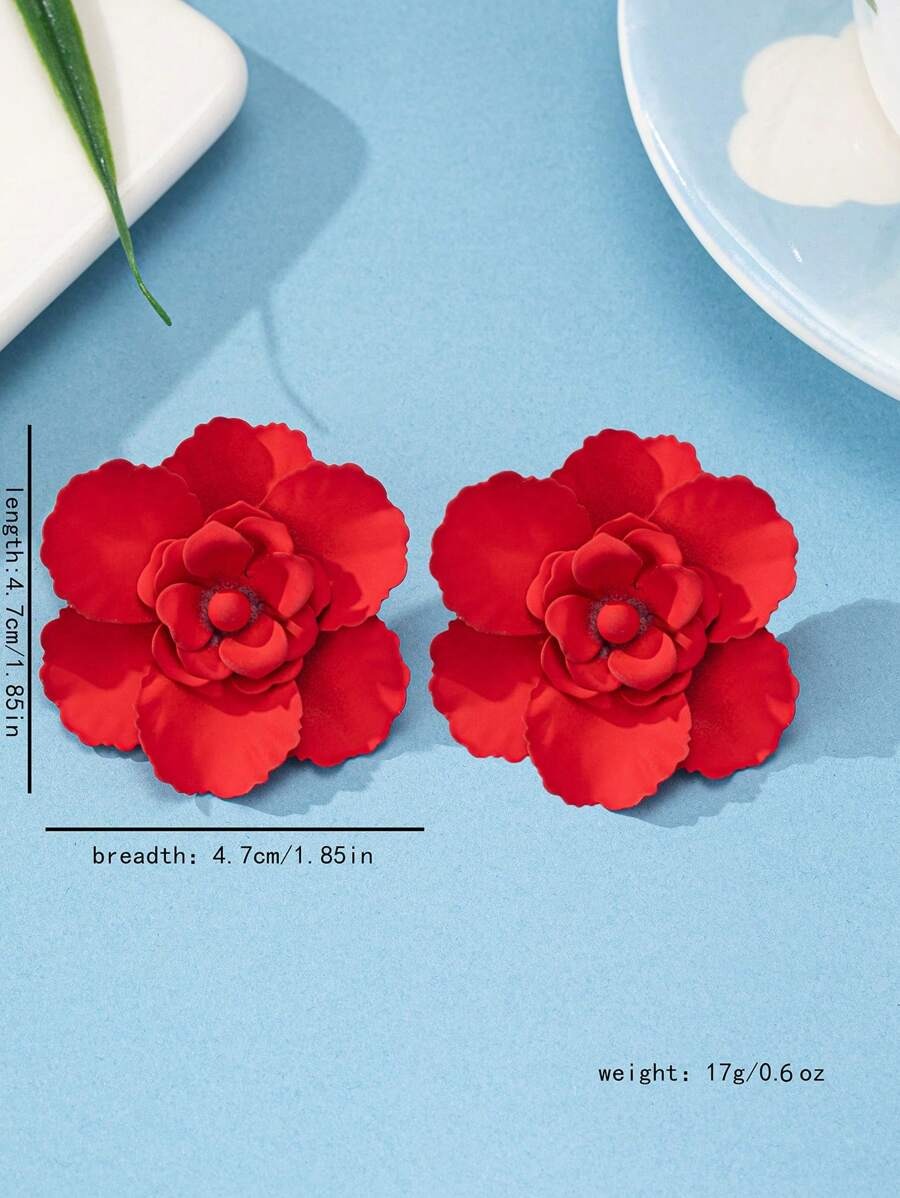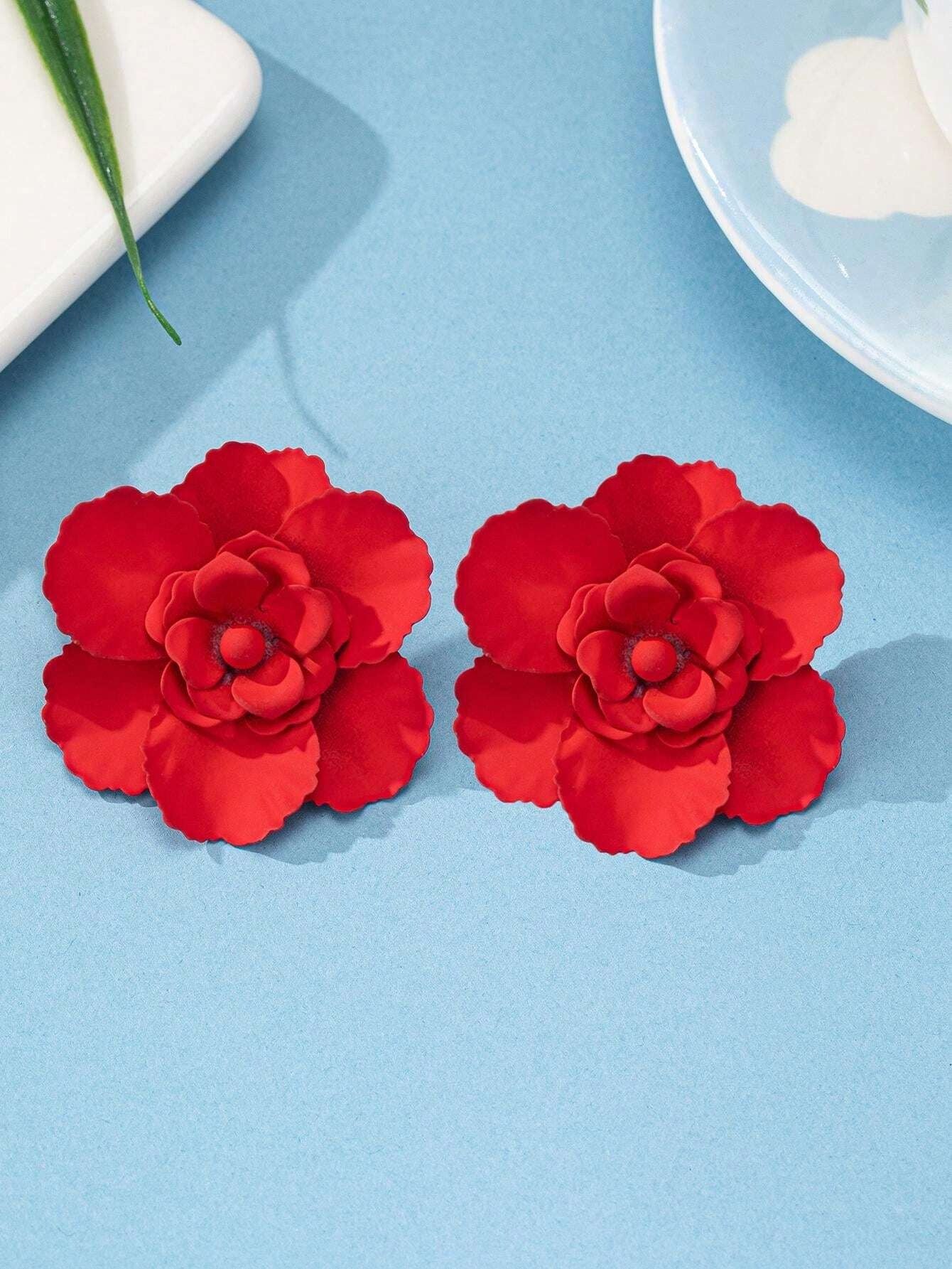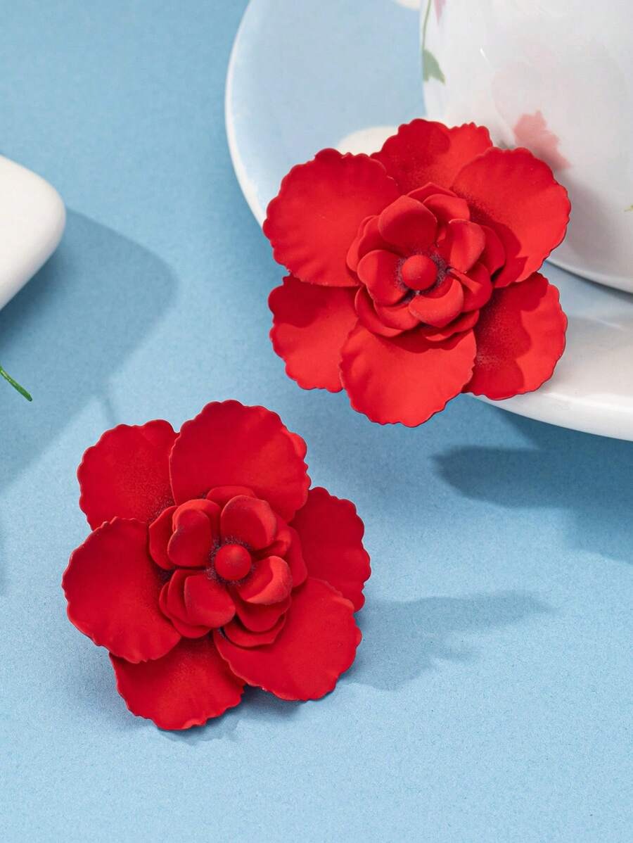 SHEIN زوج أقراط بتصميم زهور باللون الأحمر