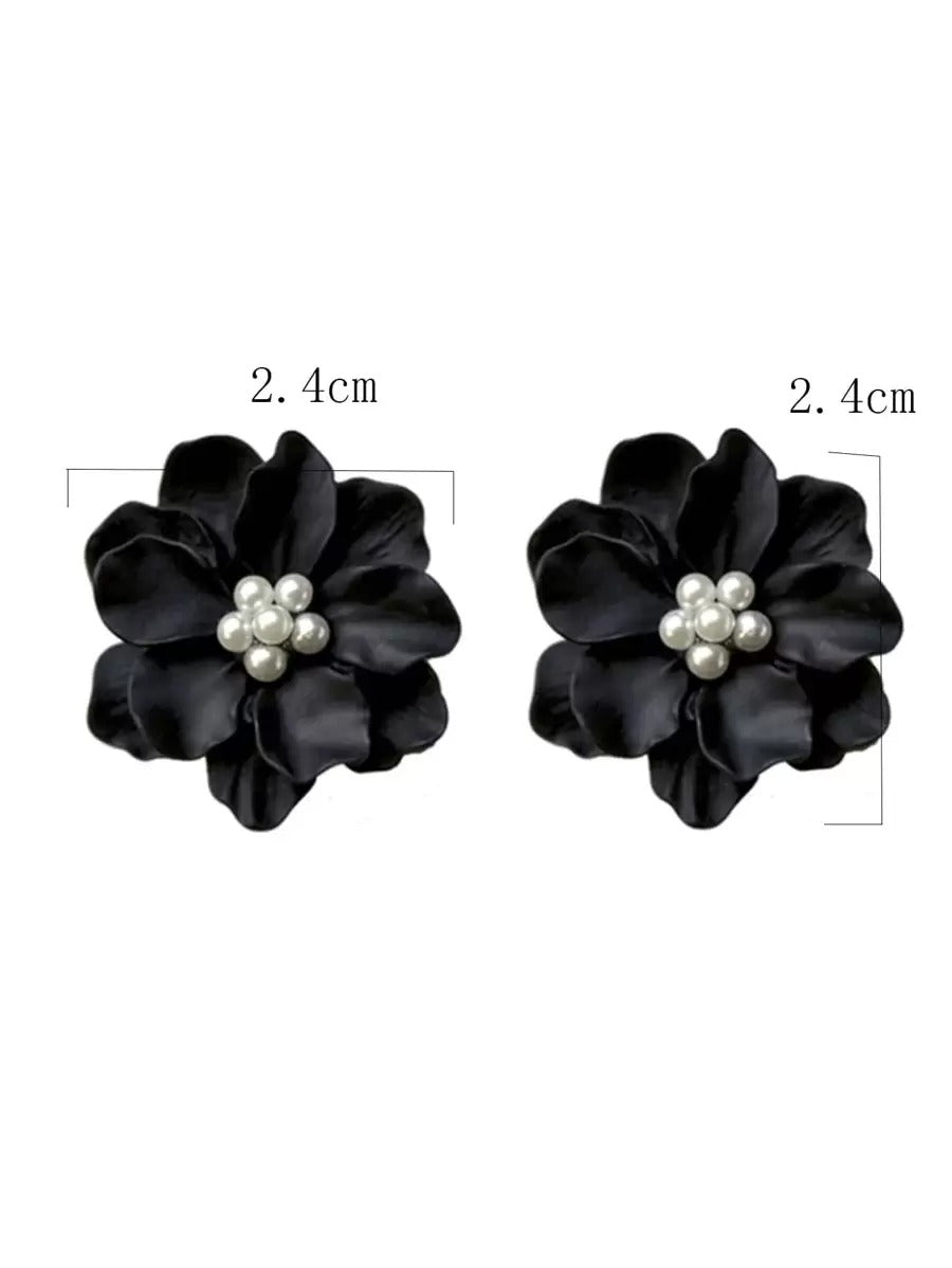زوج أقراط بزينة زهور وخرز صناعي يعطي مظهر أنيق وراقي، تصميم بسيط يناسب كل الأوقات.