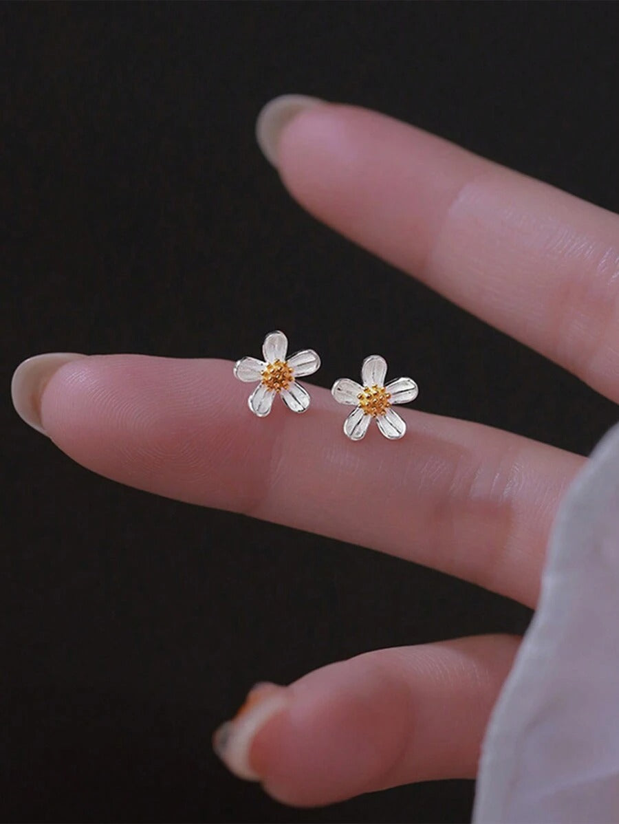 SHEIN زوج أقراط بشكل زهرة الأقحوان بتصميم دبوس خفيف وبسيط