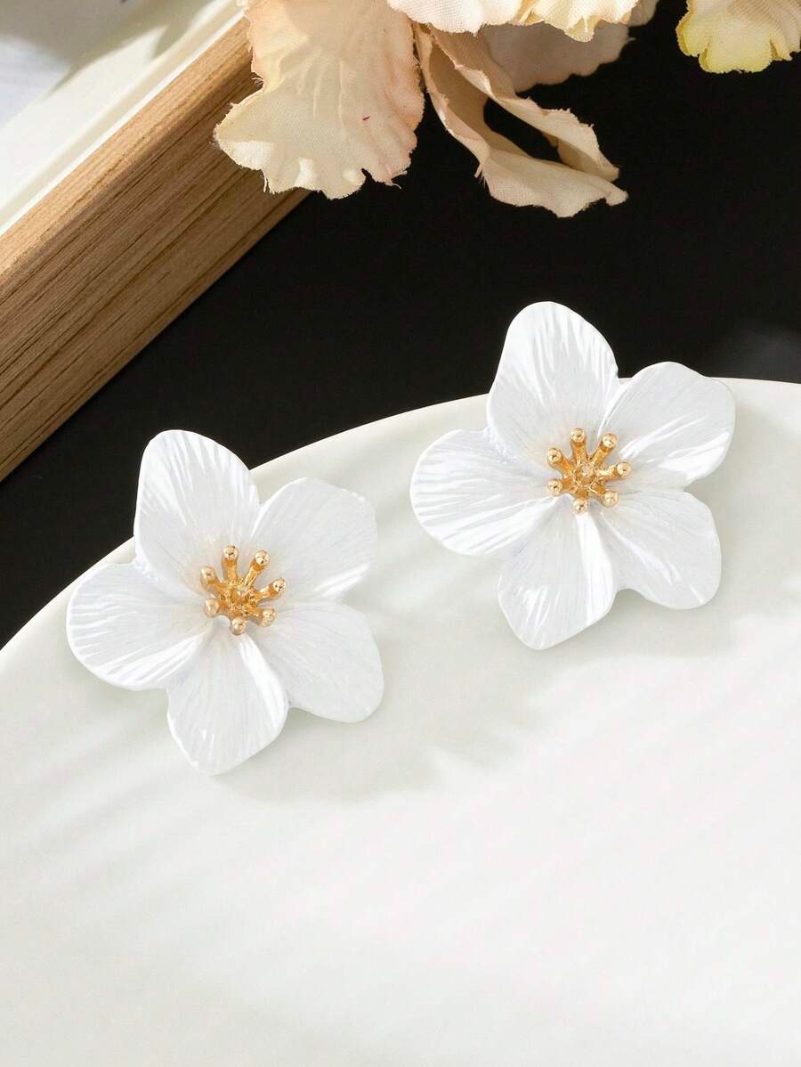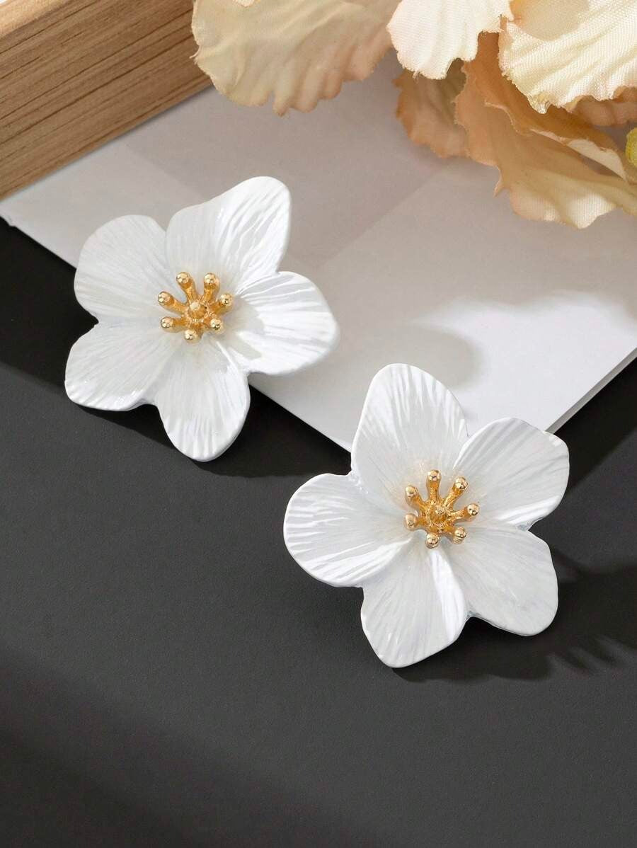 SHEIN زوج أقراط بلون أبيض بشكل زهرة