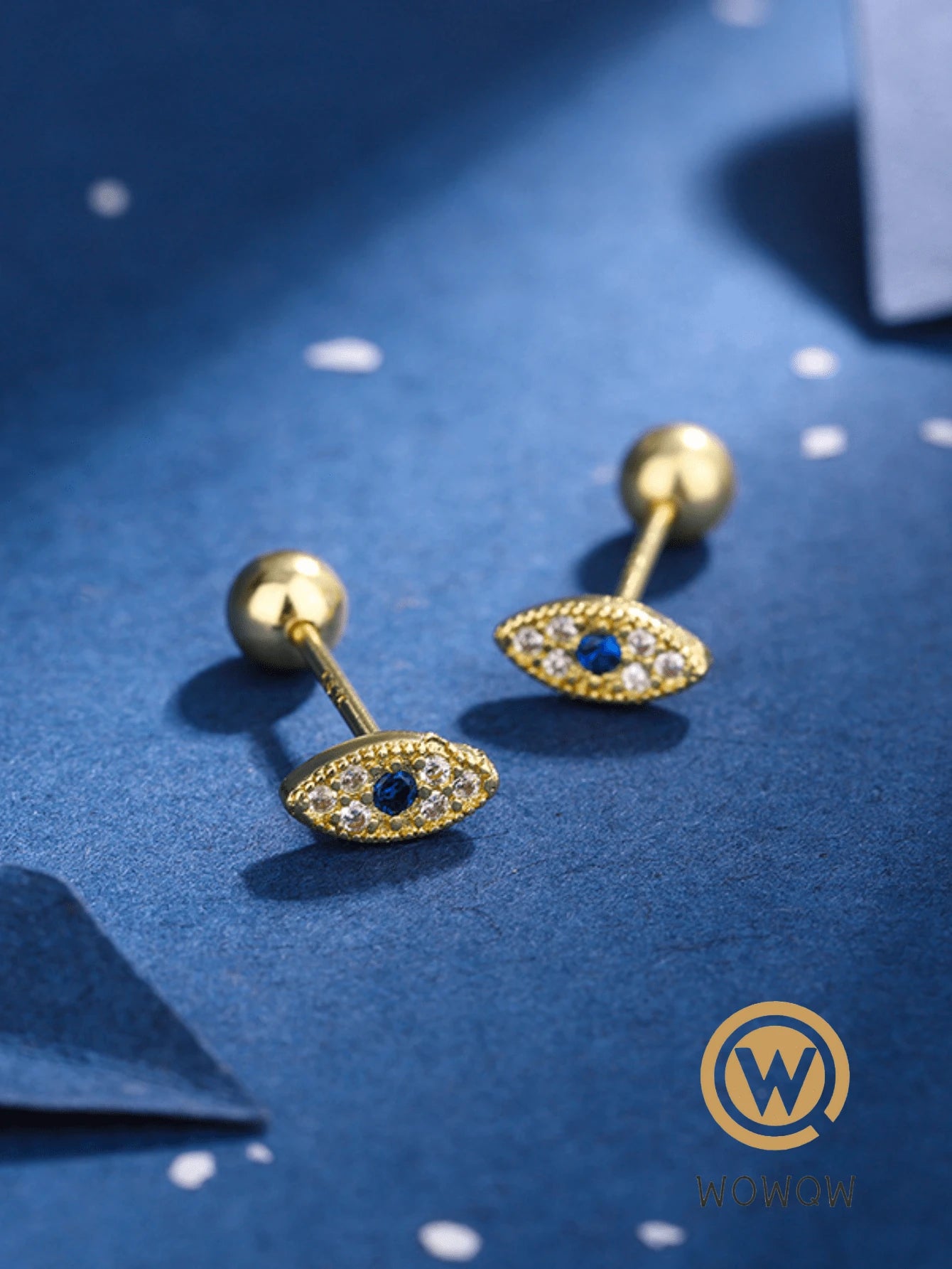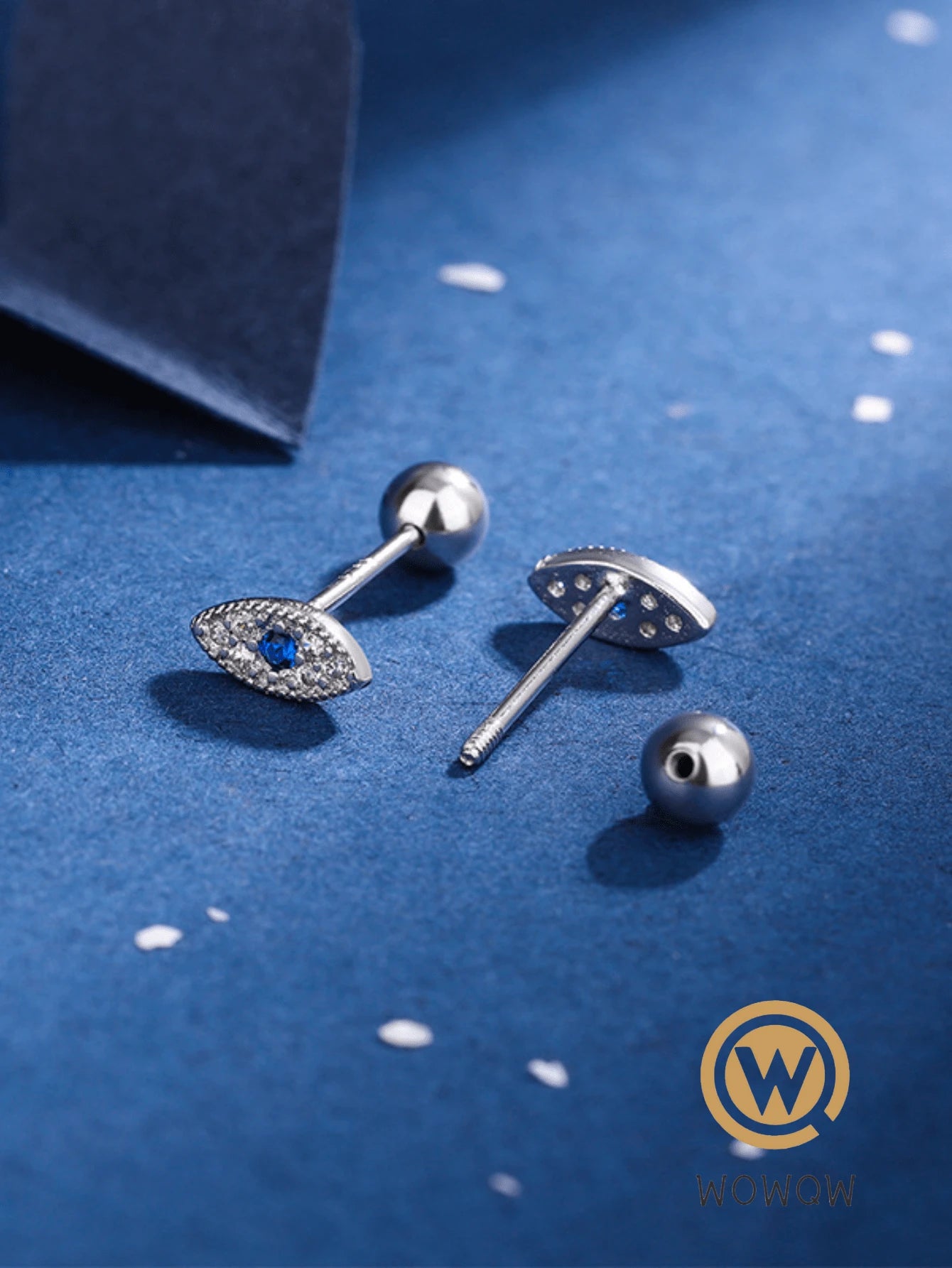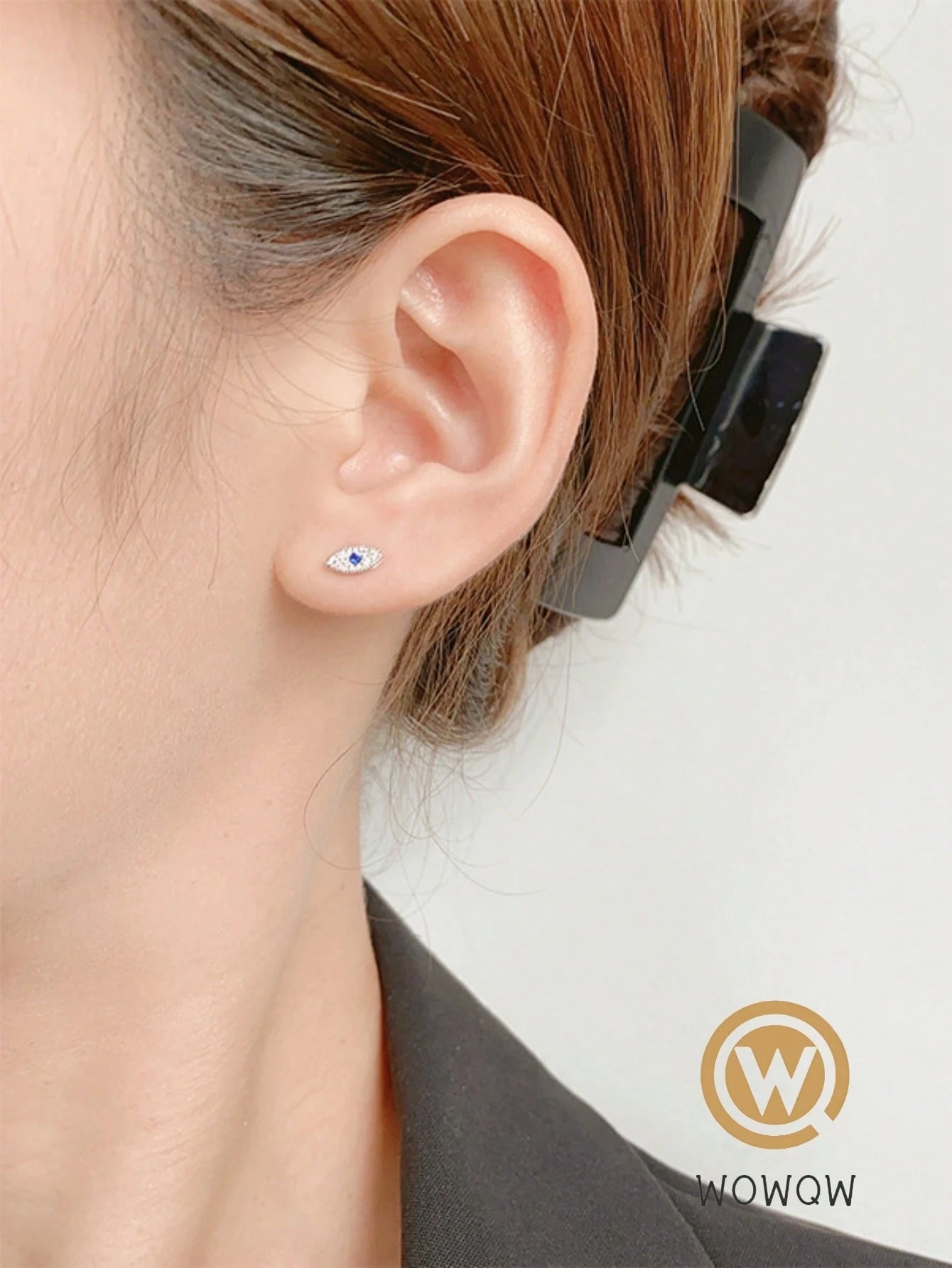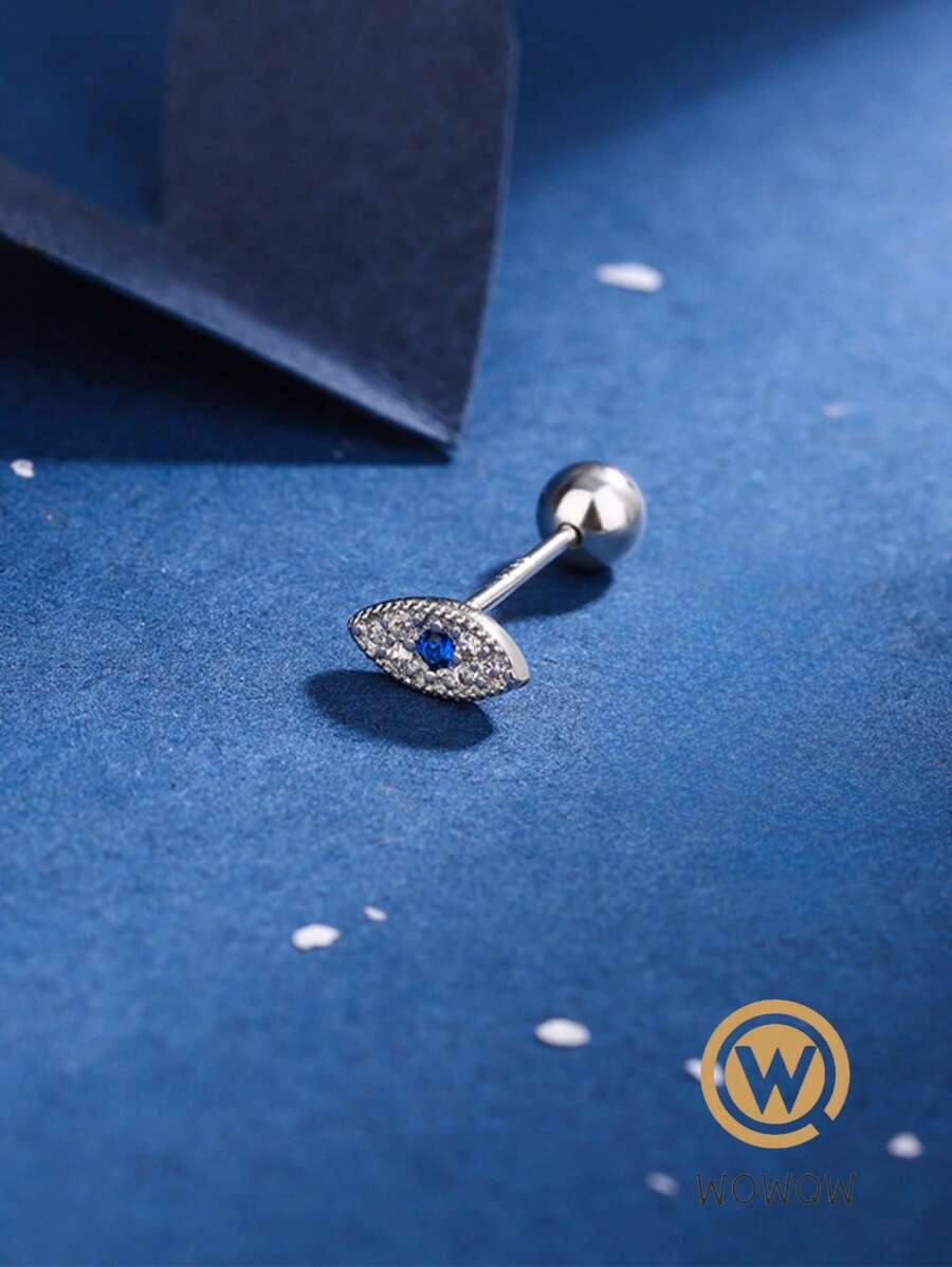 قرط أذن حلزوني صغير وأنيق من الصلب المقاوم للصدأ مزود بعين زرقاء، مثالي للسيدات للإطلالة اليومية والكاجوال ✨