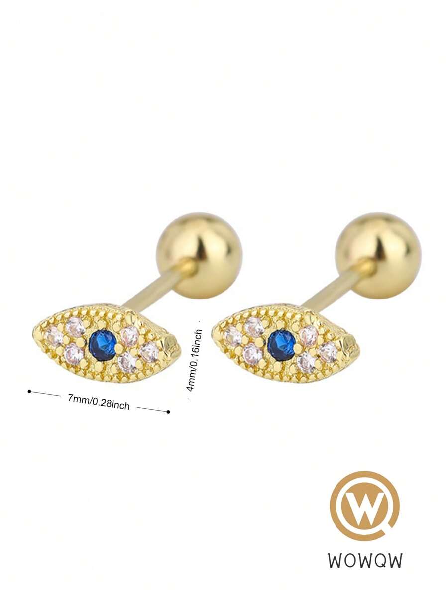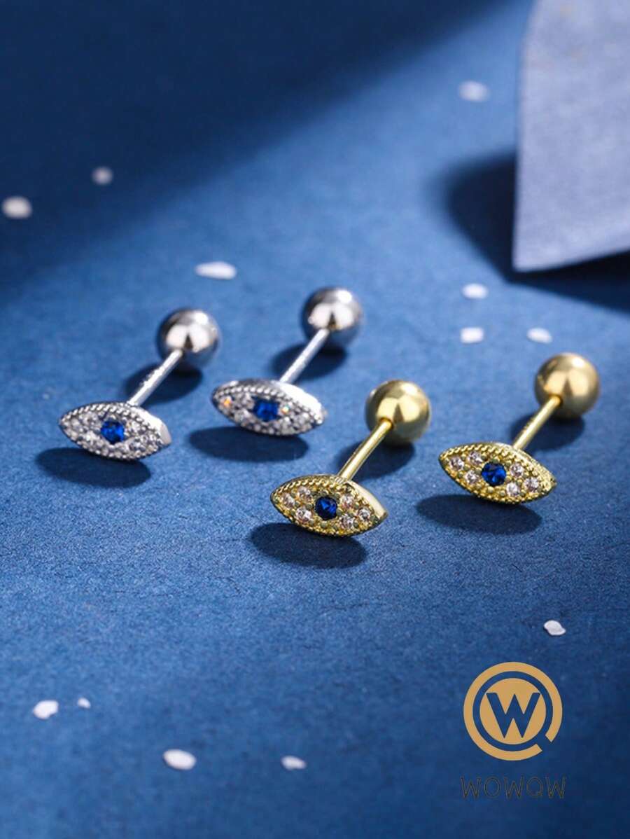SHEIN زوج أقراط حلزوني من الفولاذ مع عين زرقاء