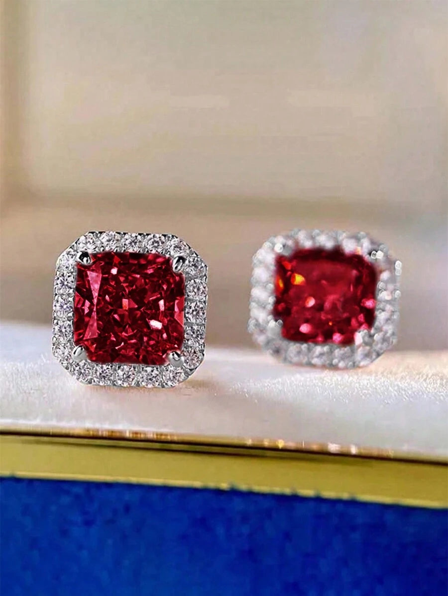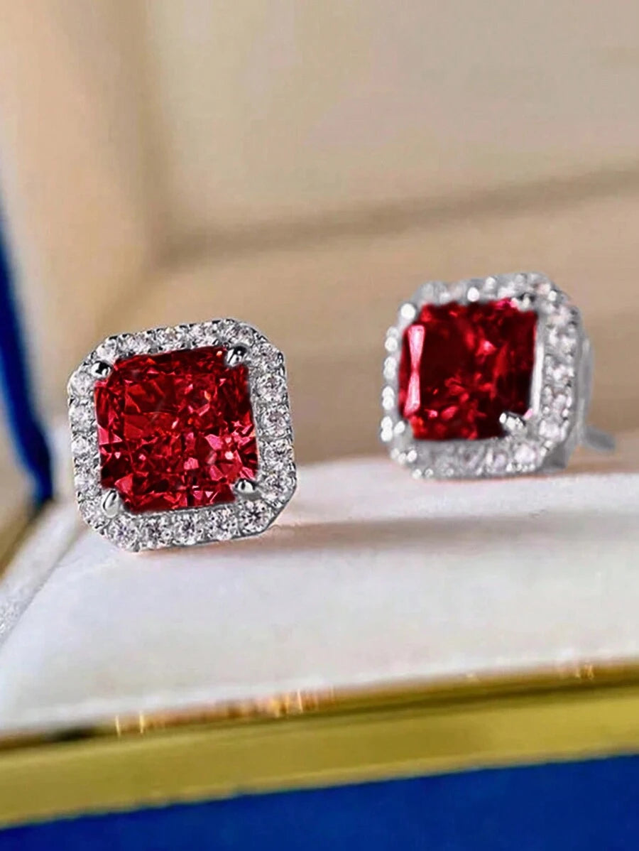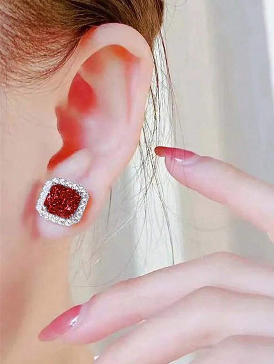 SHEIN زوج أقراط حمراء مرصعة زركونيا مكعبة