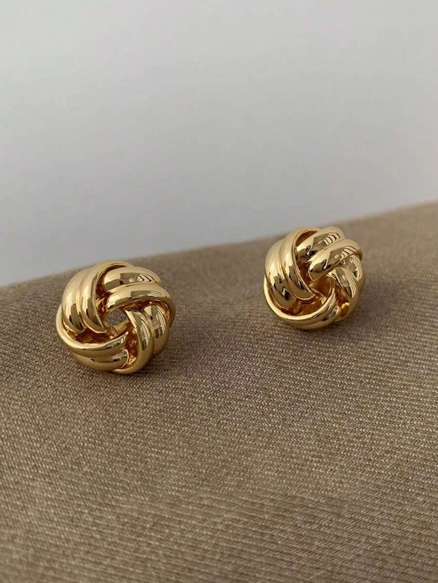 SHEIN زوج أقراط مضفرة خفيفة باللون الذهبي