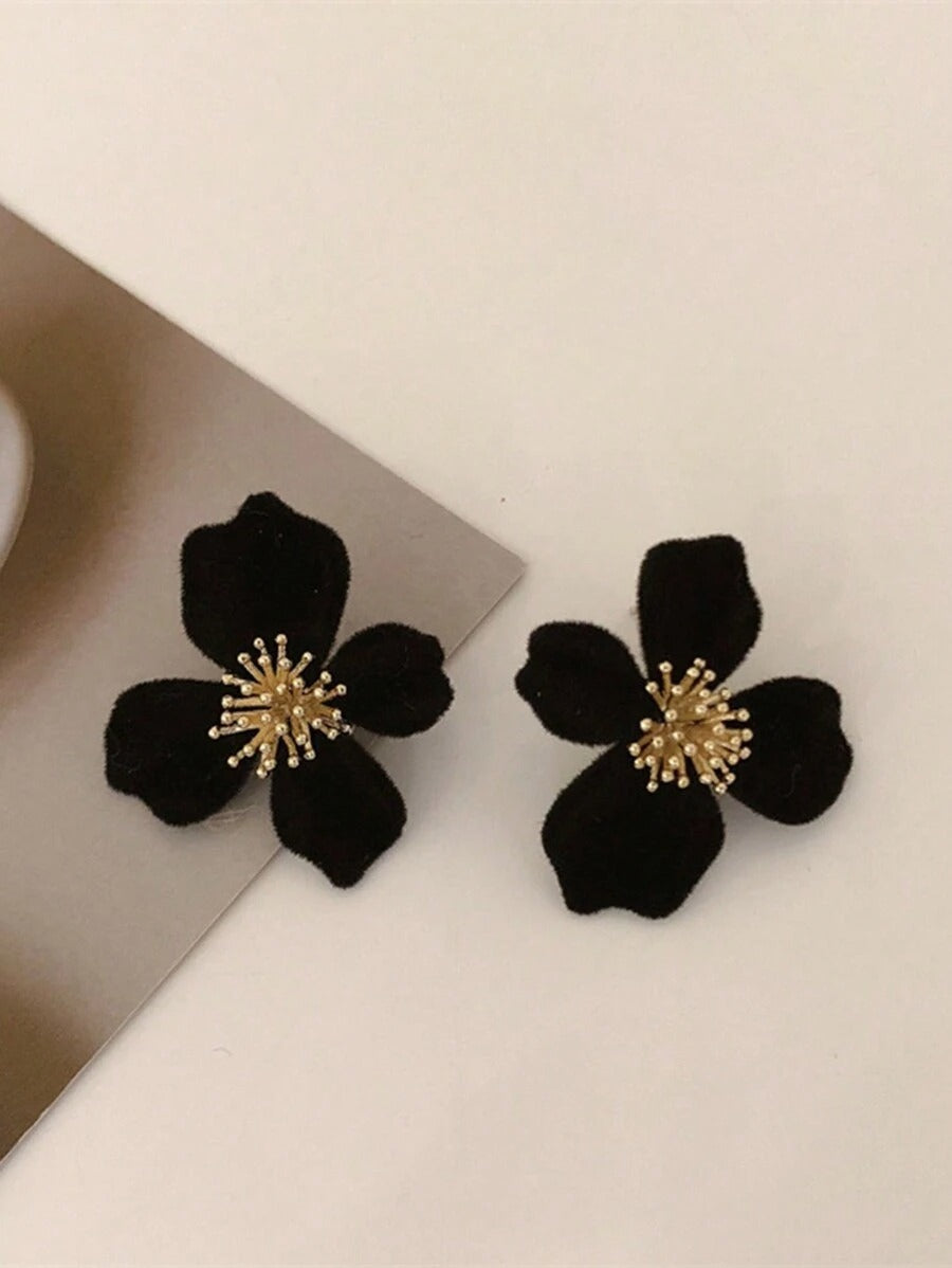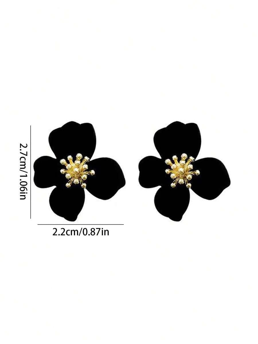 SHEIN زوج أقراط زهرة سوداء أنيقة