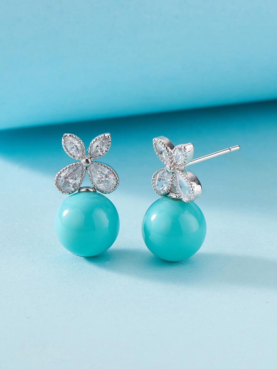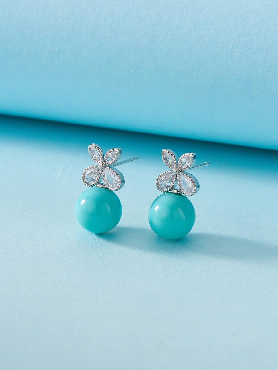 SHEIN زوج أقراط فضي مسماري مزخرف بحجر الراين