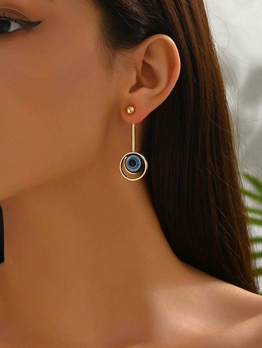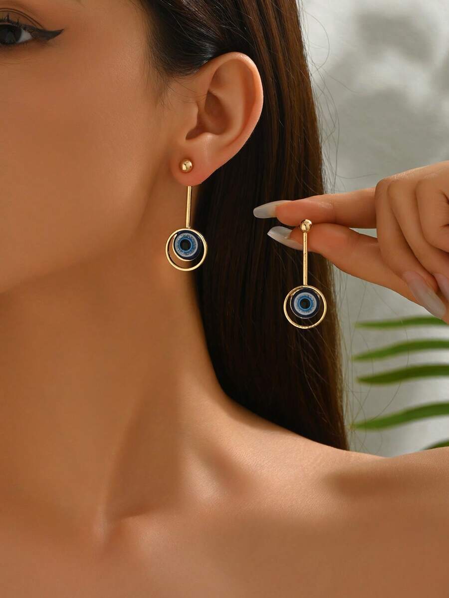 زوج من أقراط المرأة المزينة بقلادة العين الزرقاء التركية العتيقة، مثالي لإطلالة كاجوال وعصرية ✨