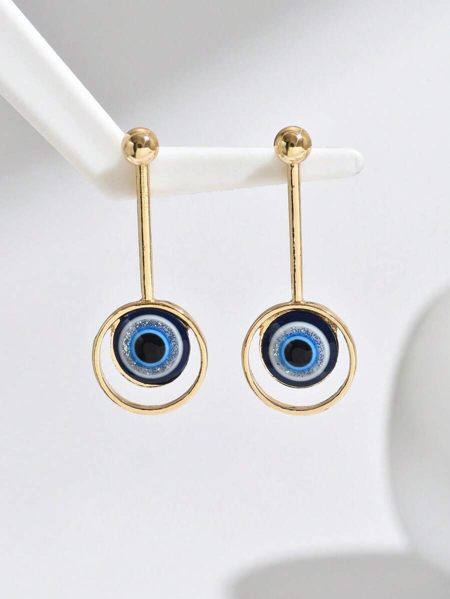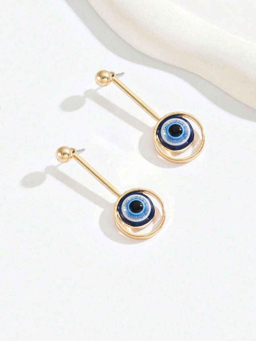 SHEIN زوج أقراط قلادة العين الزرقاء التركية العتيقة