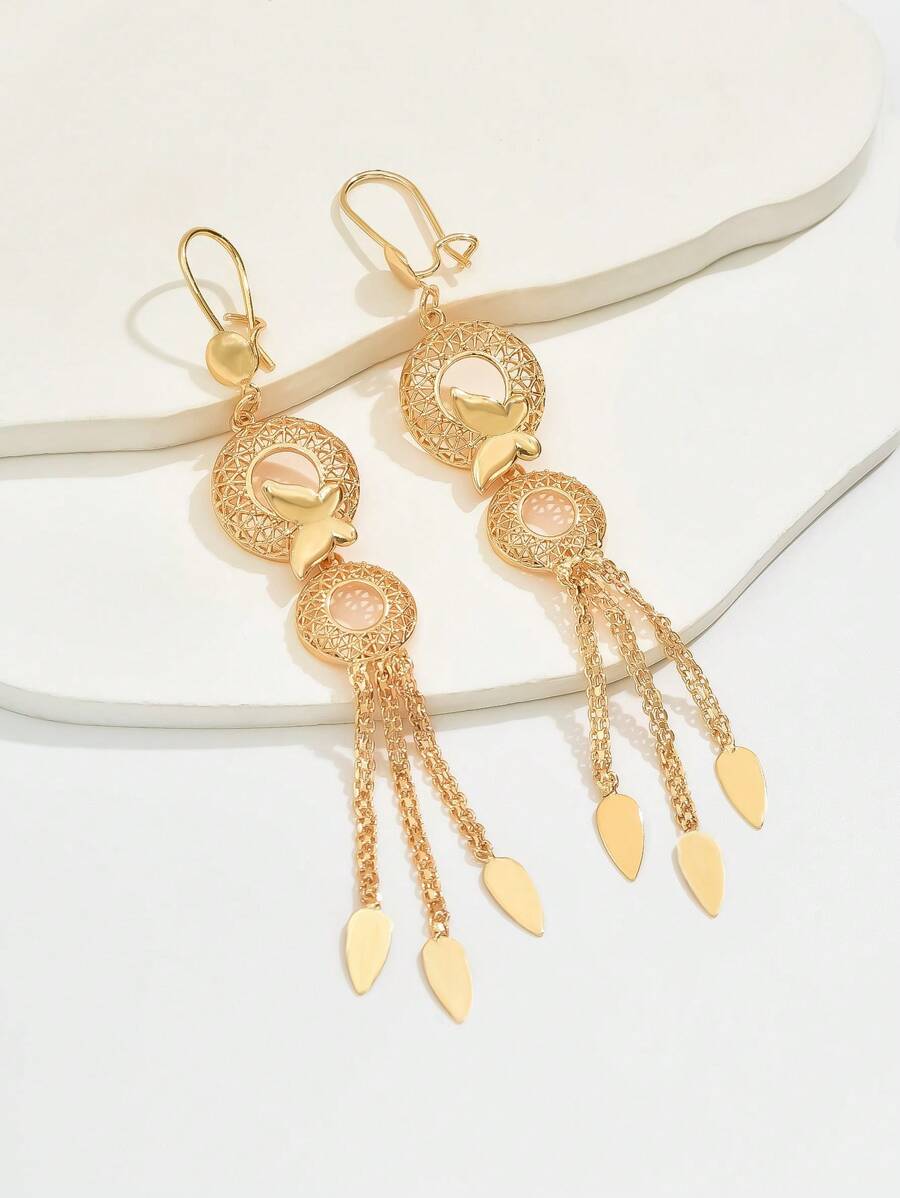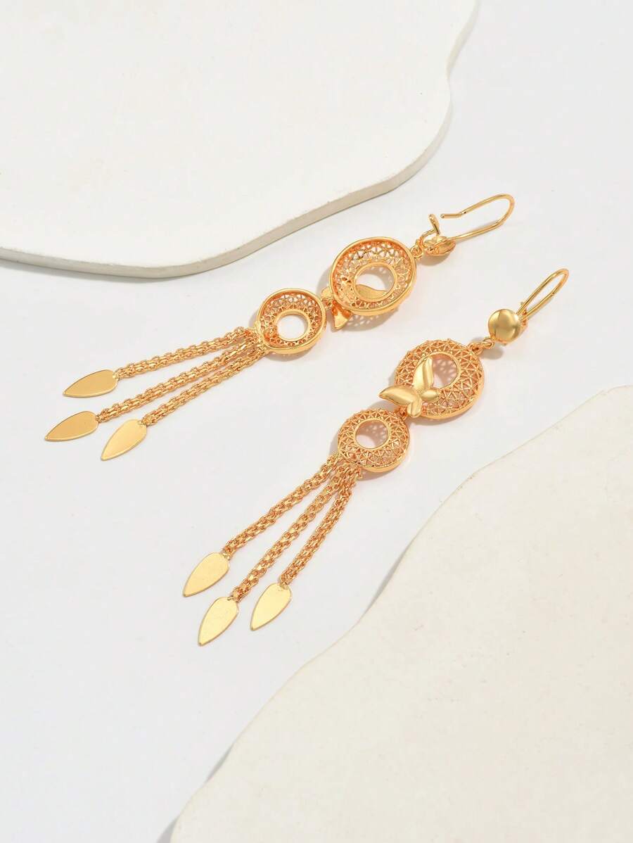 SHEIN زوج أقراط مزدوجة مفرغة مع شرابة