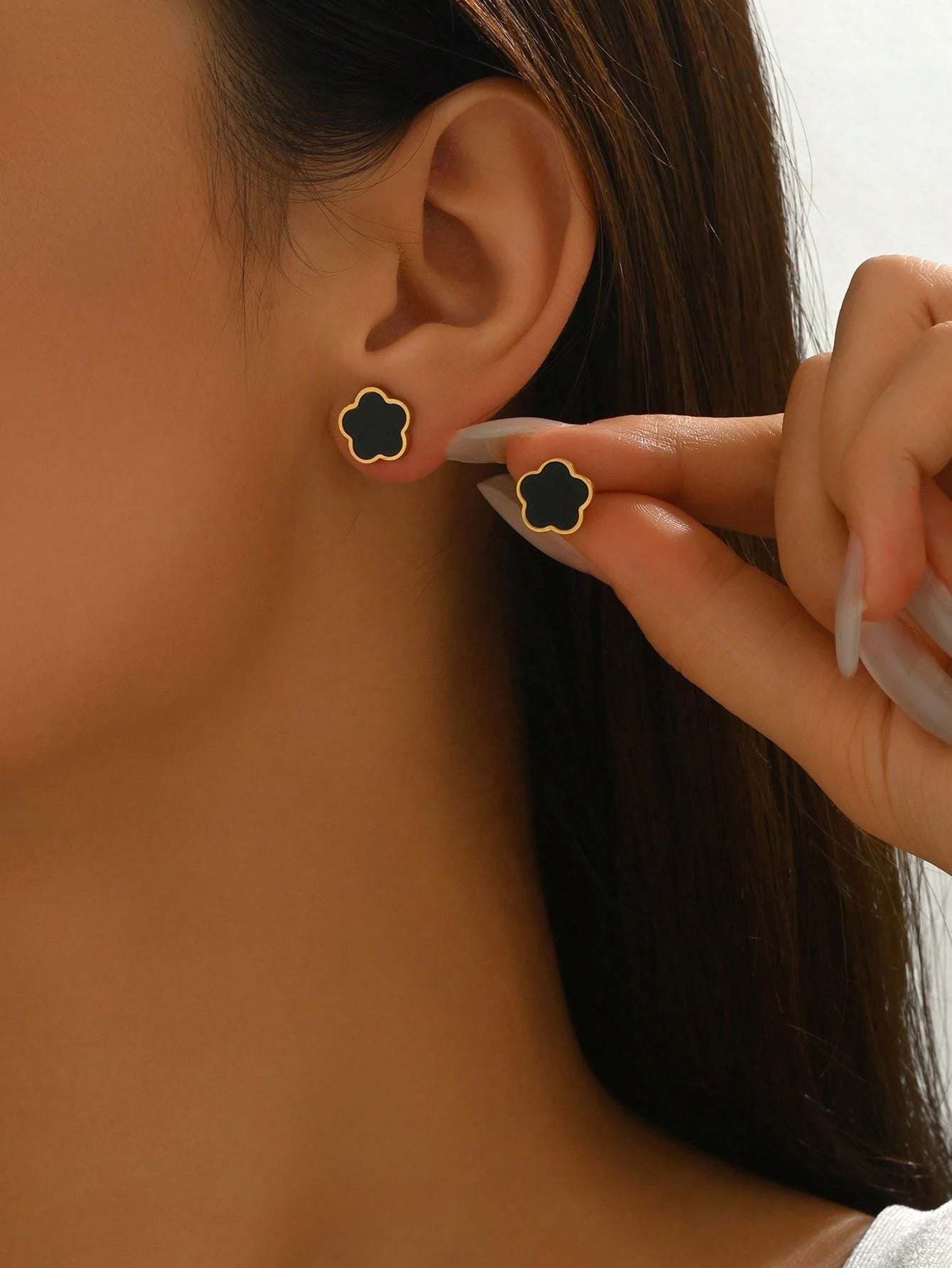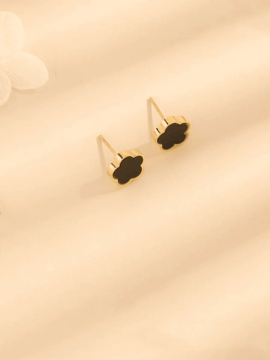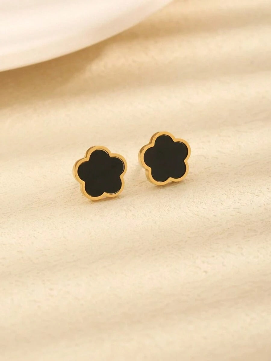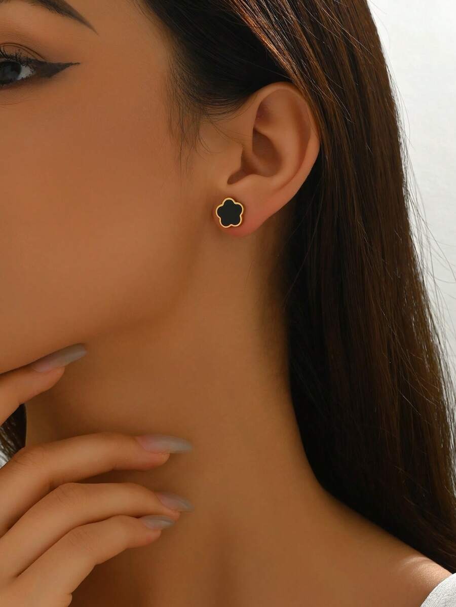 SHEIN زوج أقراط مسمارية بشكل زهرة بلون أسود