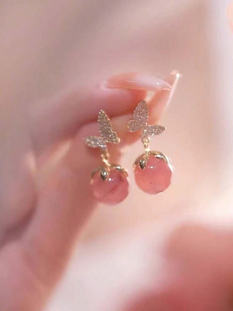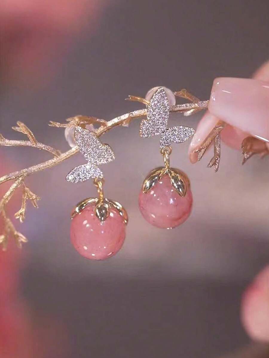 SHEIN زوج أقراط وردية بحبيبات راتنج وزركونيا