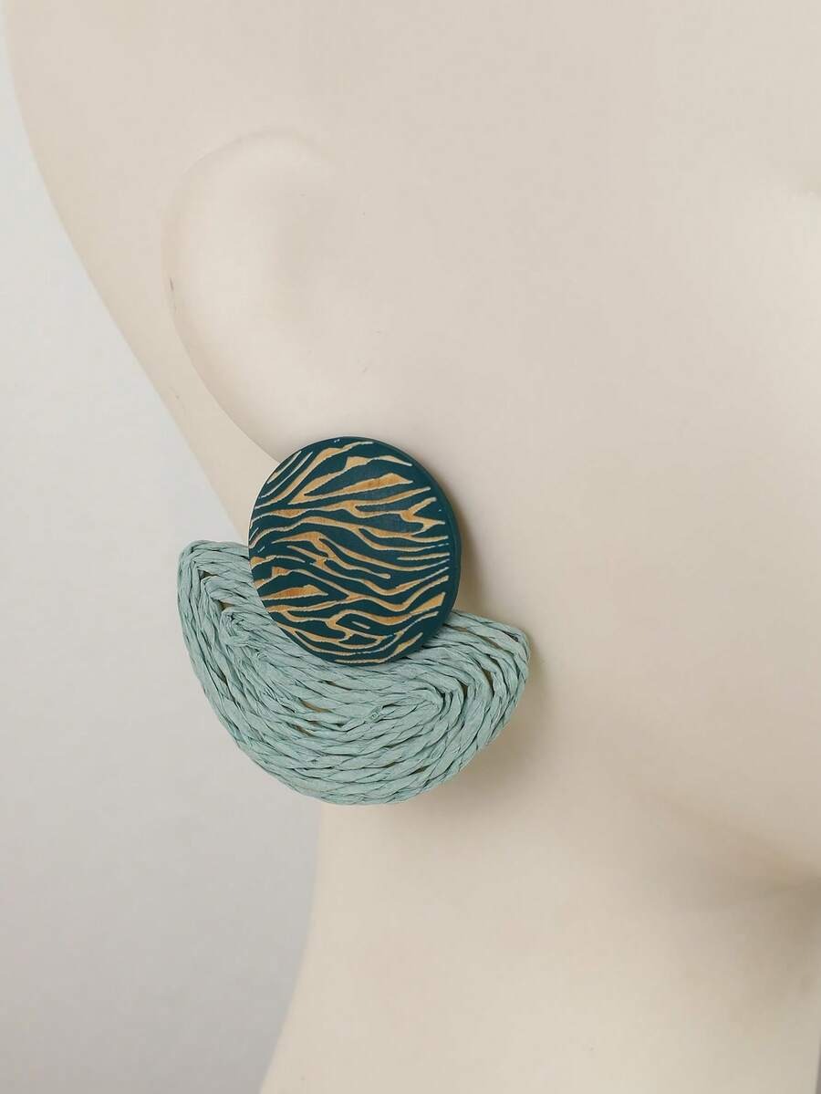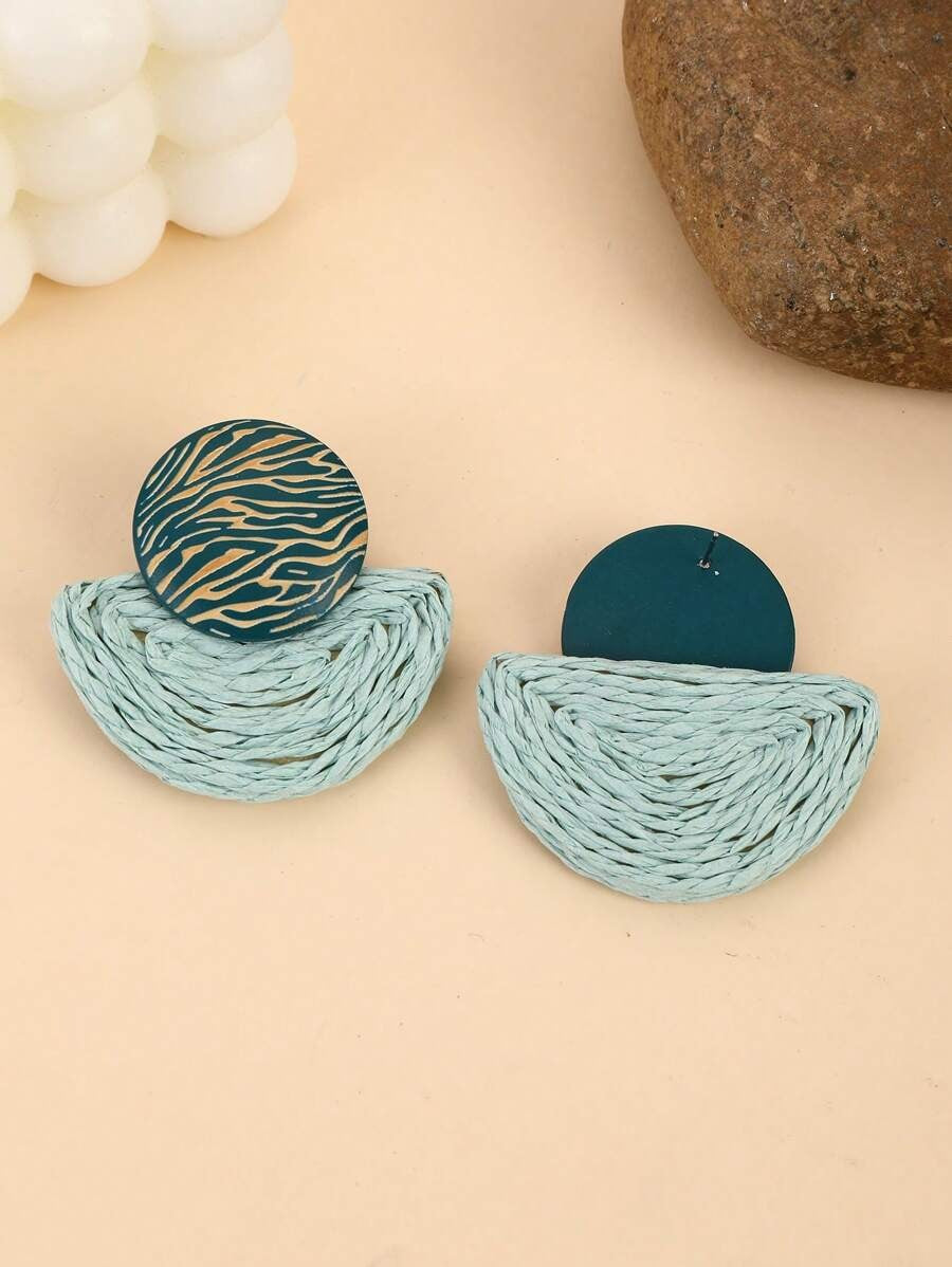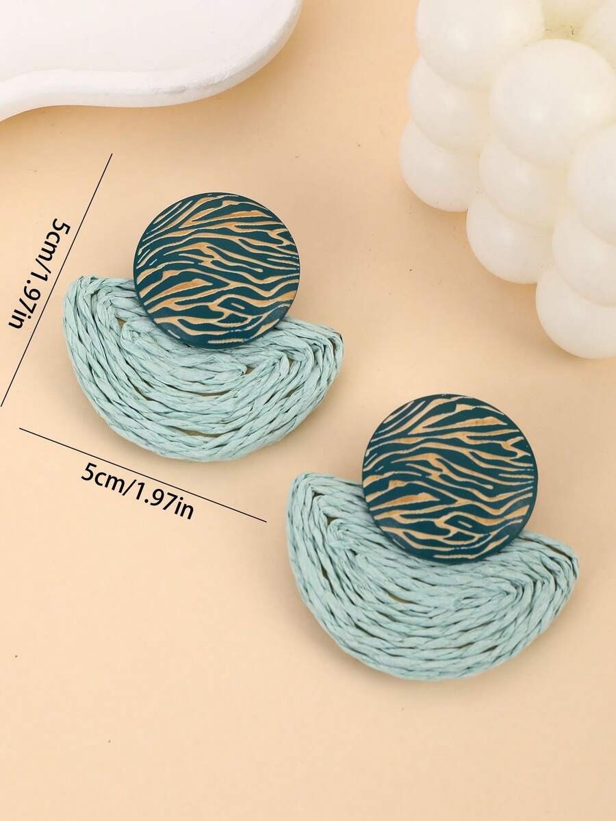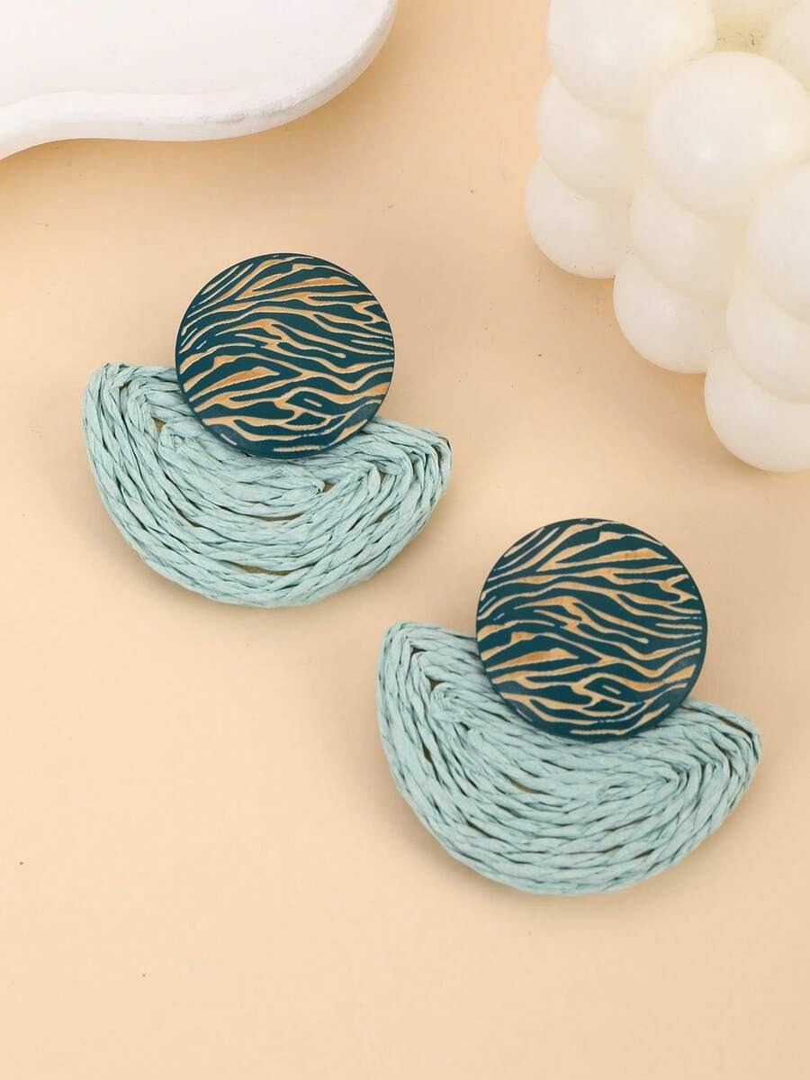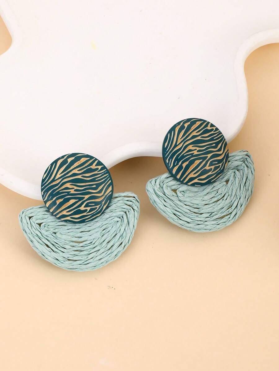 SHEIN زوج أقراط وقلادة على شكل مروحة بتصميم خشبي بلون أخضر
