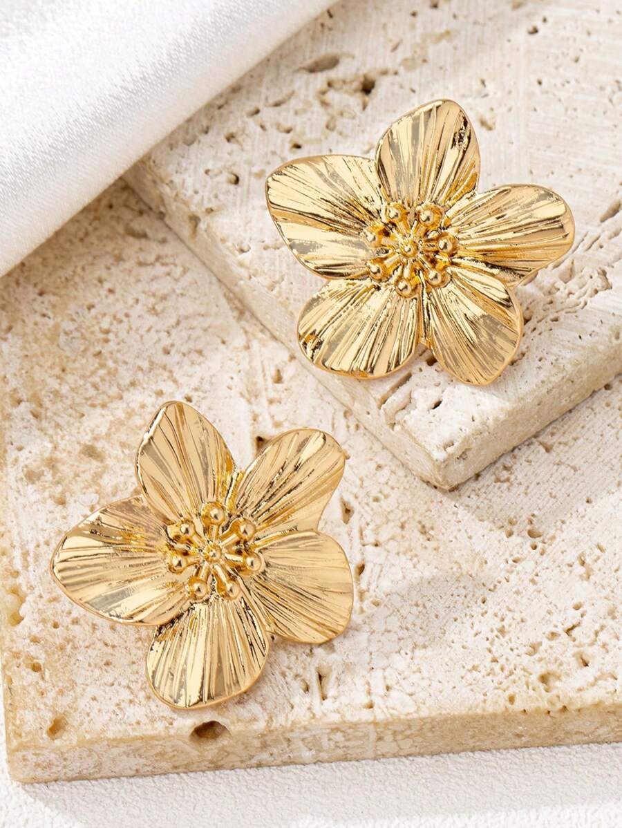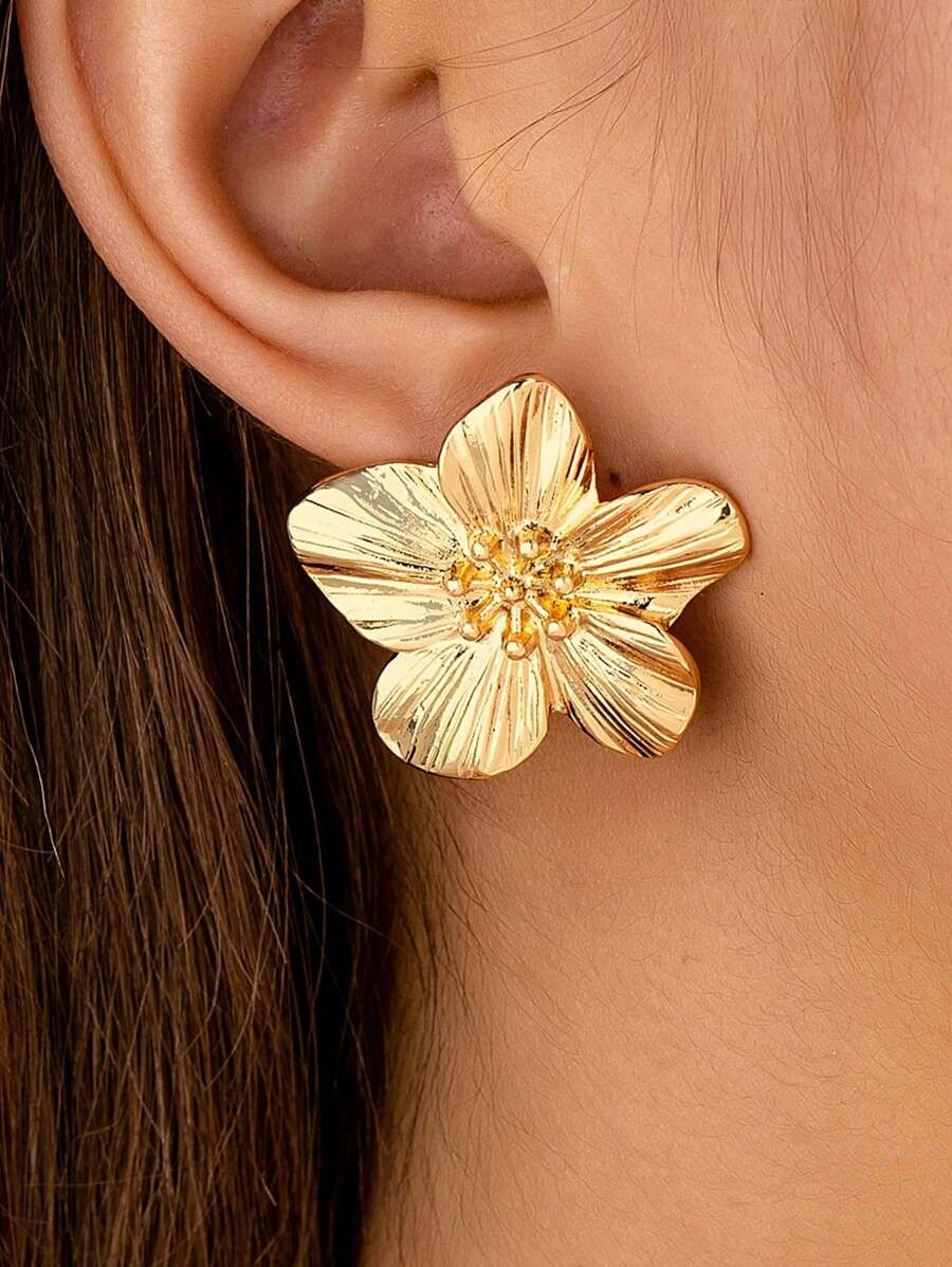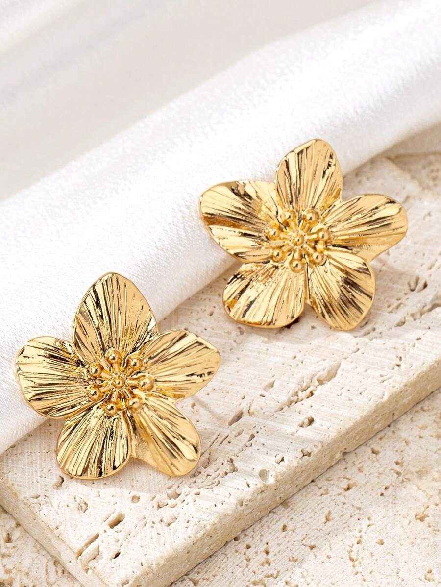 SHEIN زوج أقراط ذهبية بشكل زهرة