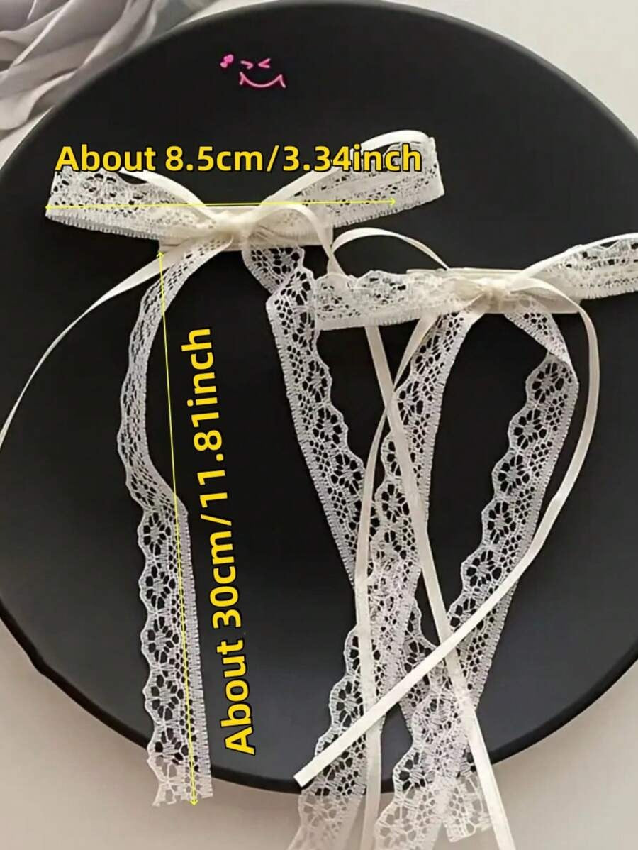SHEIN زوج من مشابك الشعر بشكل فراشة بيضاء من قماش الدانتيل