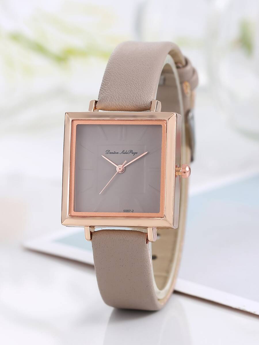 طقم يضم ساعة كوارتز بميناء مربع مع سوار، مناسب للاستخدام اليومي بأسلوب كاجوال.