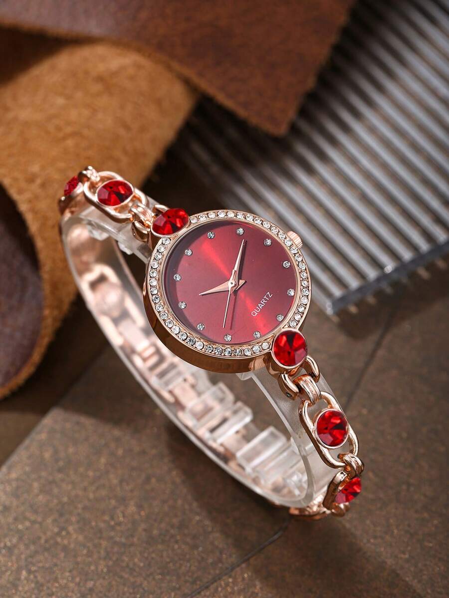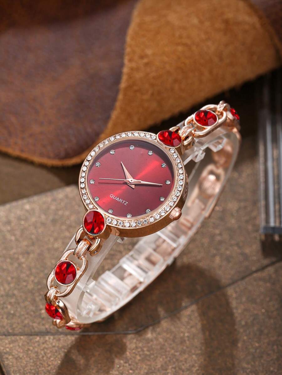 SHEIN ساعة نسائية حمراء أنيقة كاجوال، عملية للاستخدام اليومي وهدية مثالية للمناسبات
