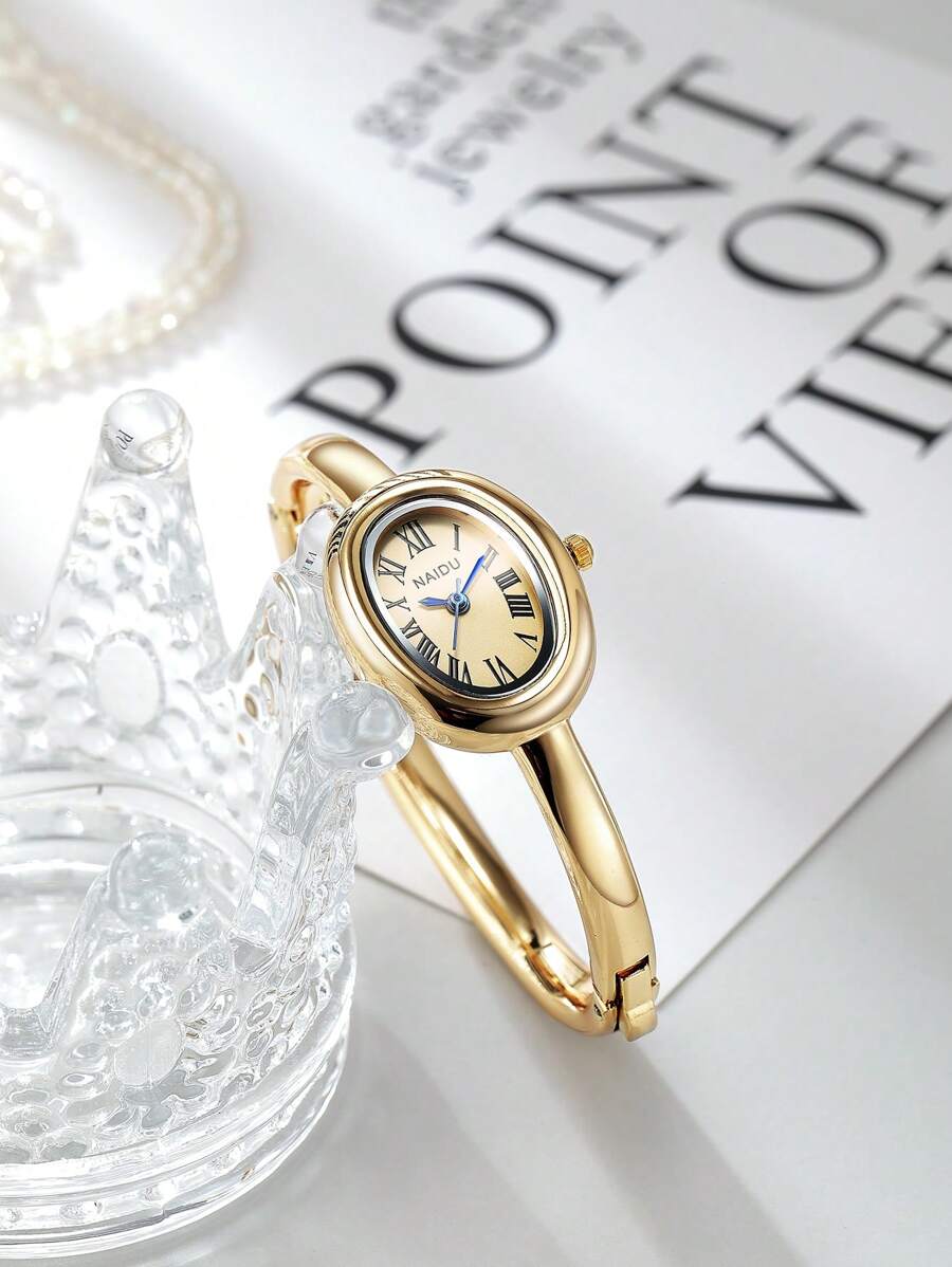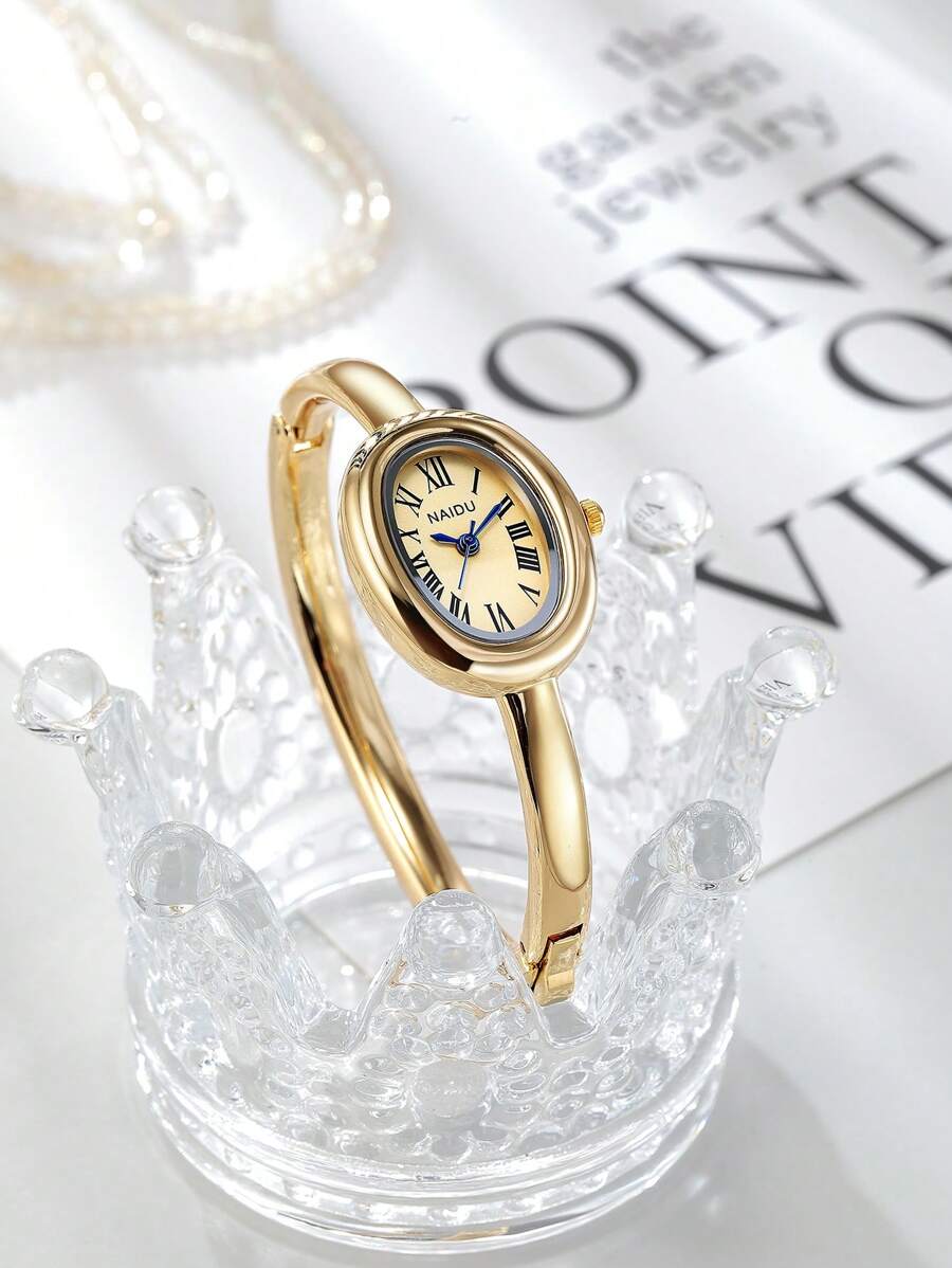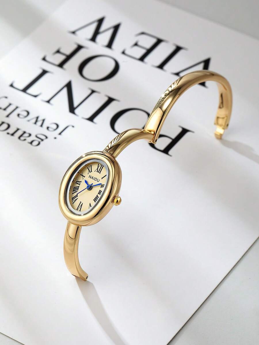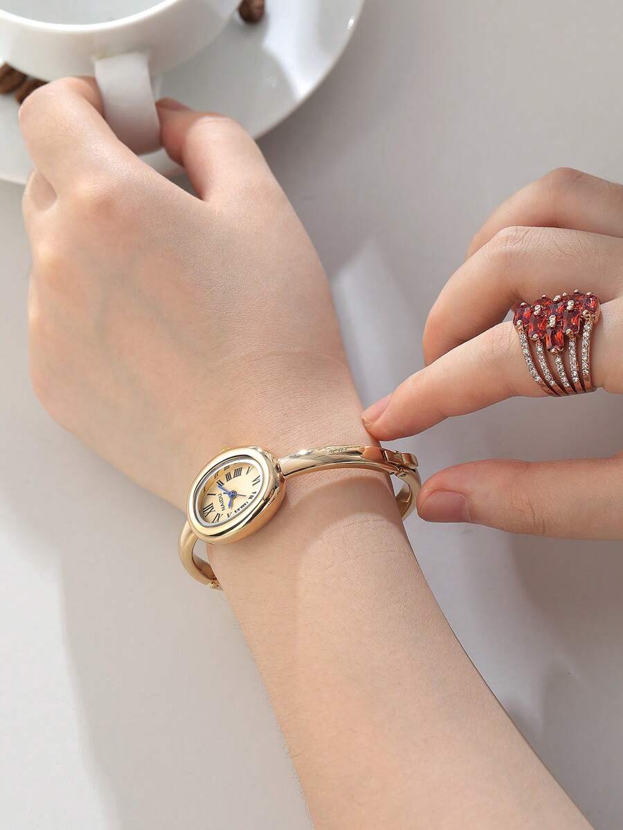 SHEIN ساعة نسائية ذهبية كوارتز بطراز عتيق