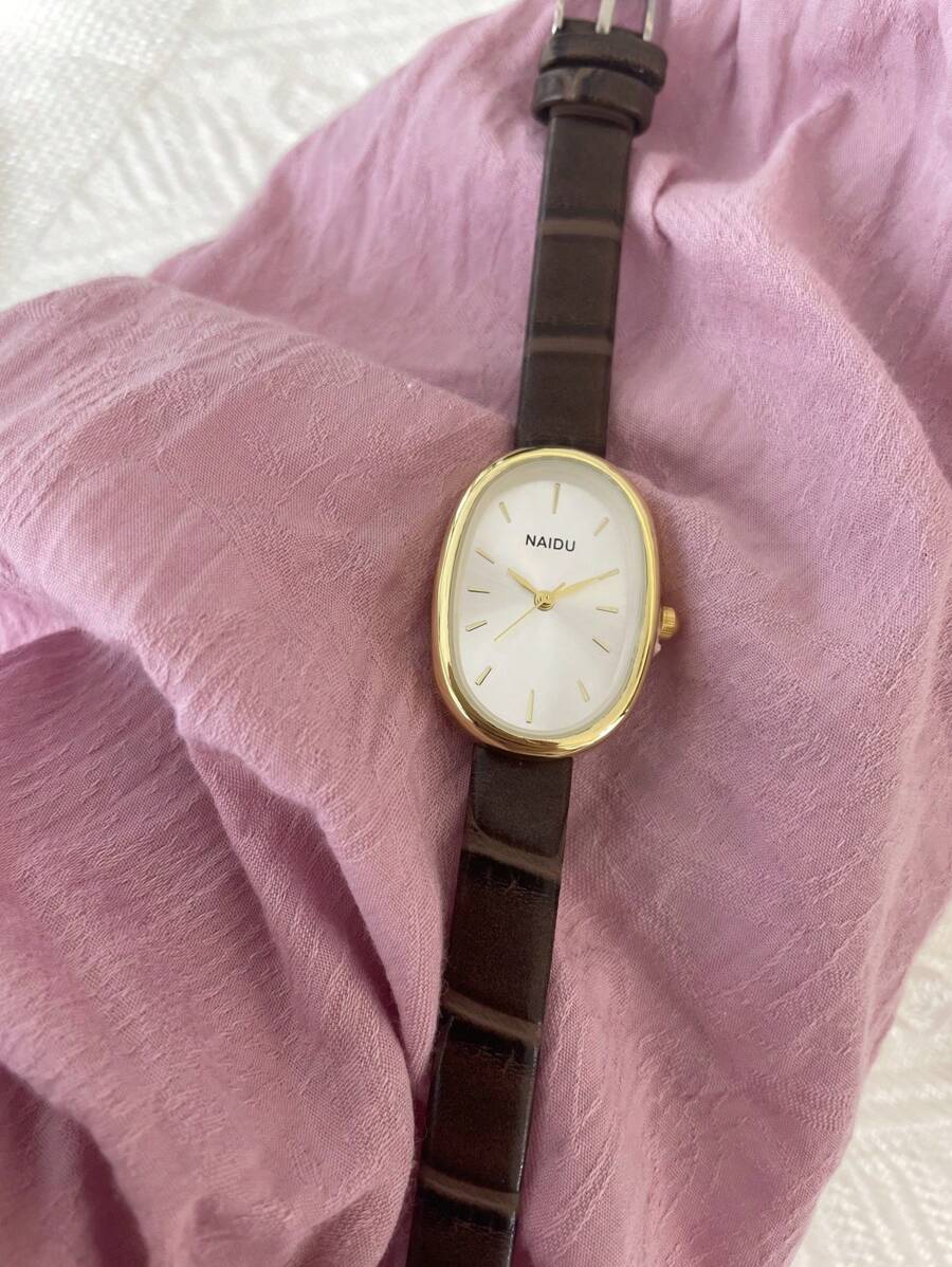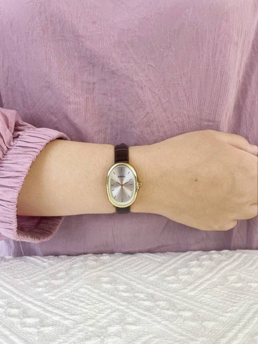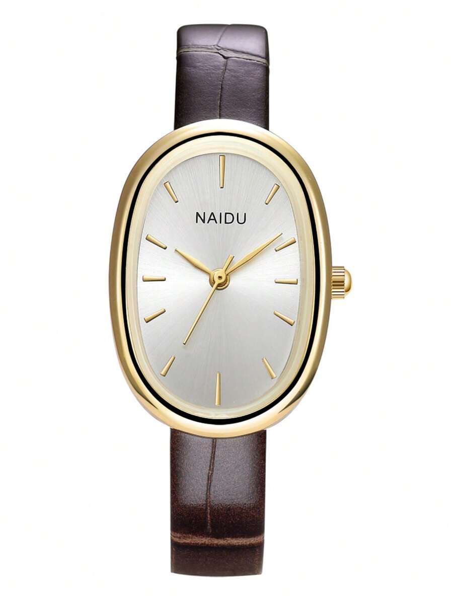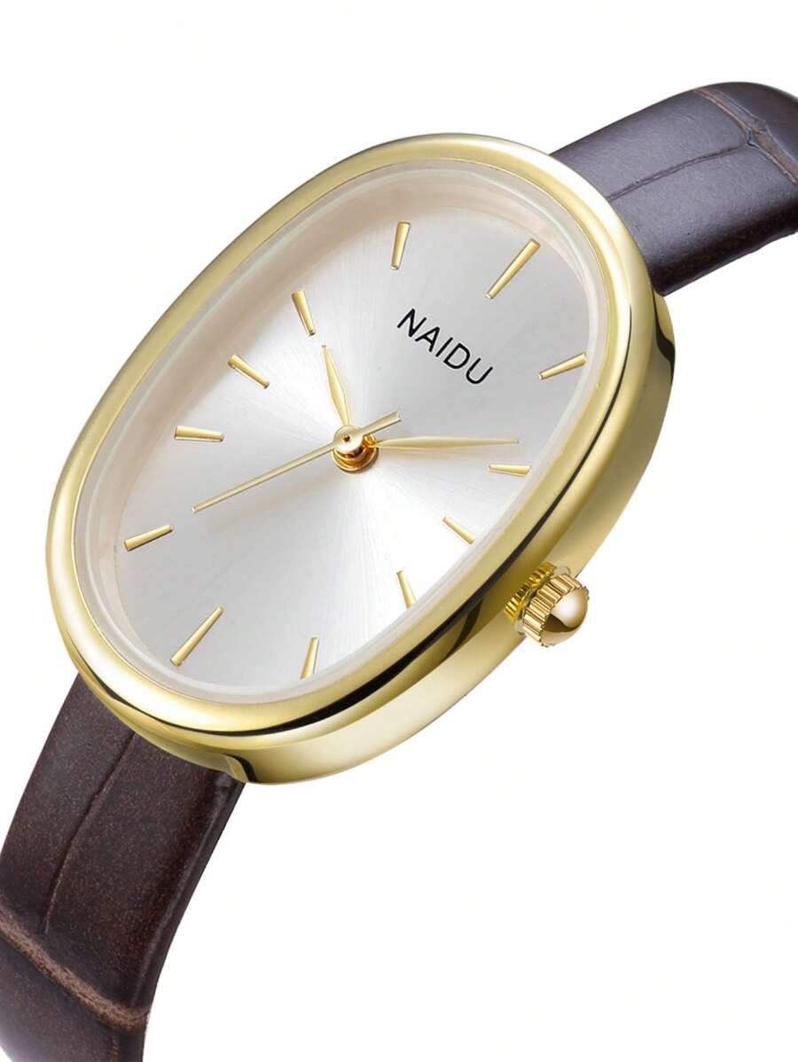 ساعة نسائية أنيقة وبسيطة بقرص بيضاوي وميكانيكية كوارتز، تصميم كلاسيكي مع حزام جلدي، مناسبة للارتداء اليومي.